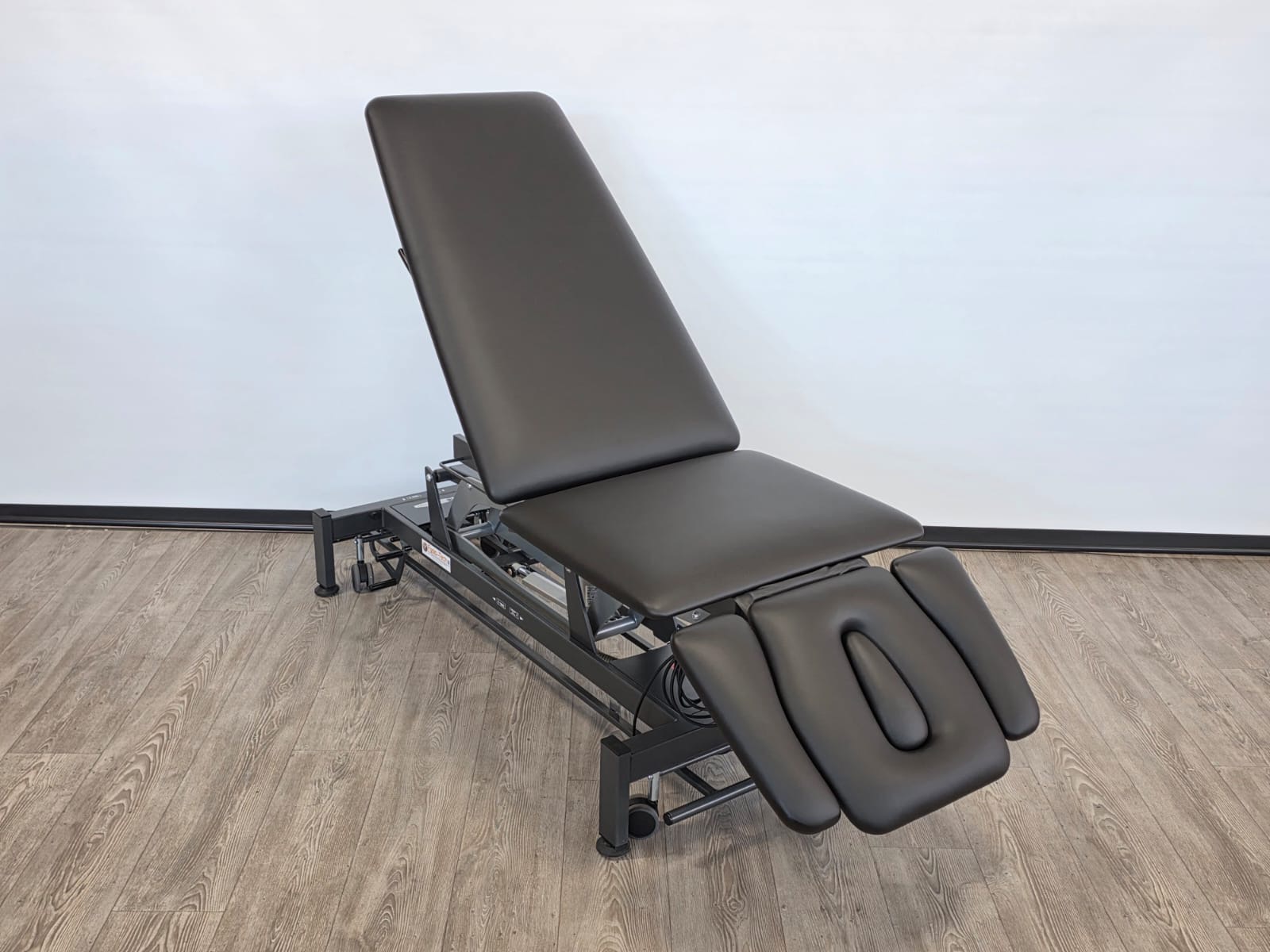 Deze professionele behandeltafel is elektrisch in hoogte verstelbaar door middel rondom bediening.