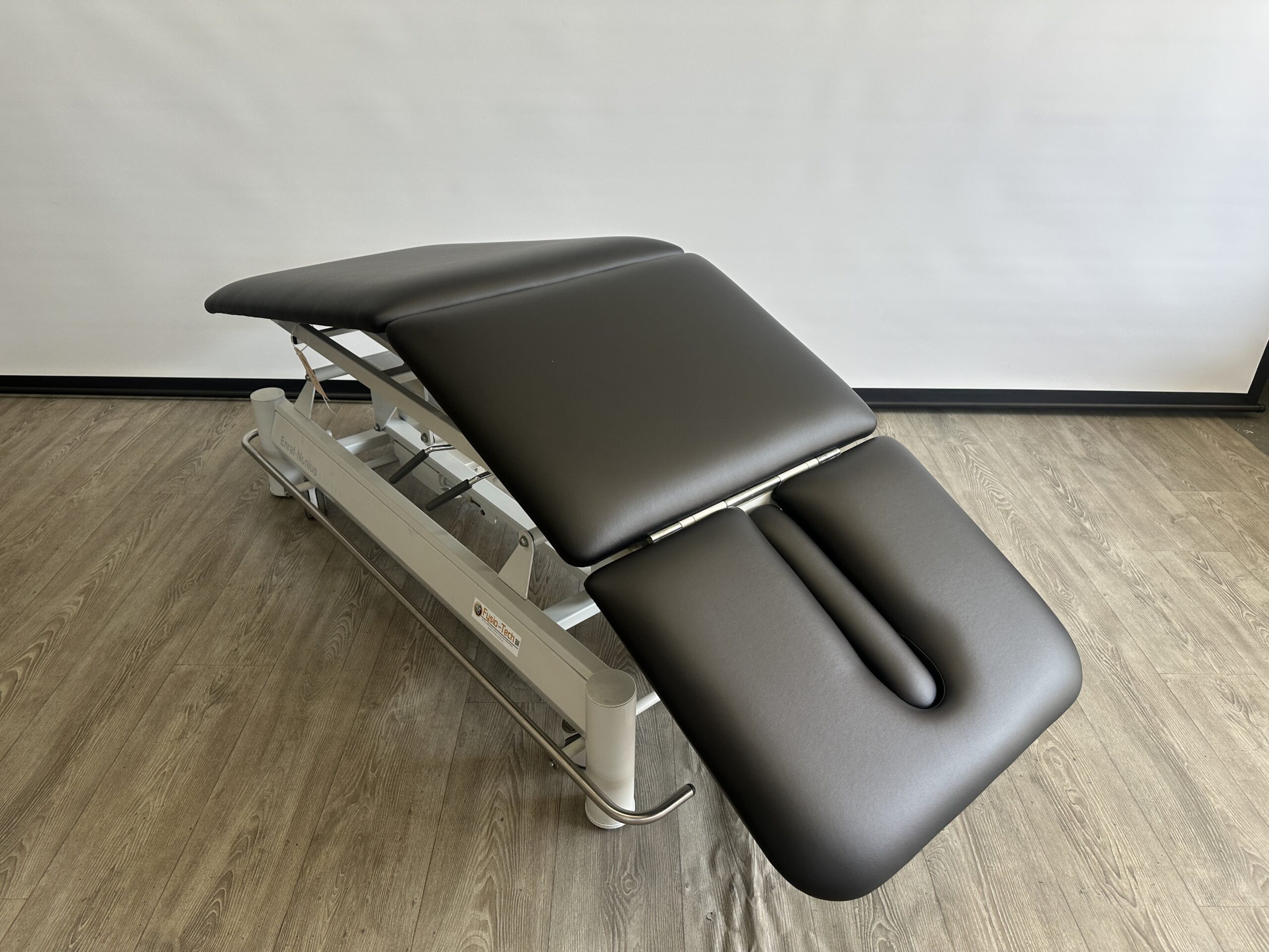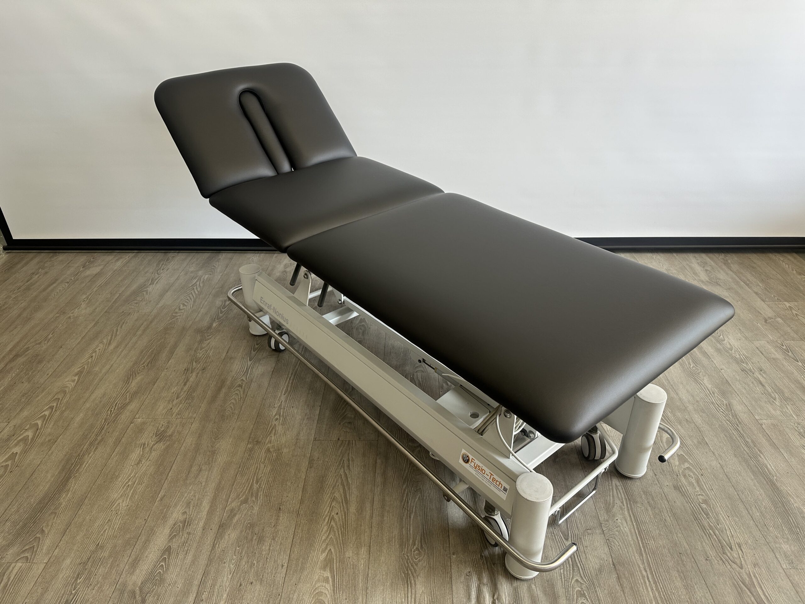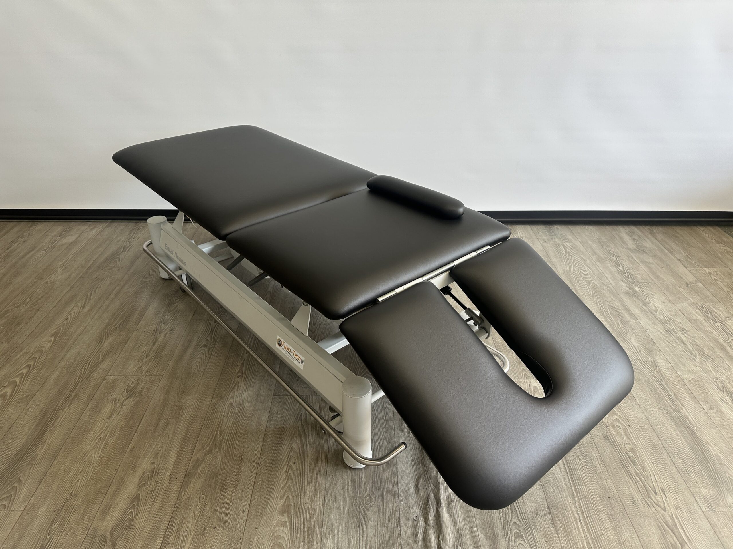 Deze professionele behandeltafel is elektrisch in hoogte verstelbaar door middel rondom bediening. De behandeltafel is voorzien van wielen en een centraal wielhefsysteem. Alle delen kunnen worden bediend doormiddel van gasveren