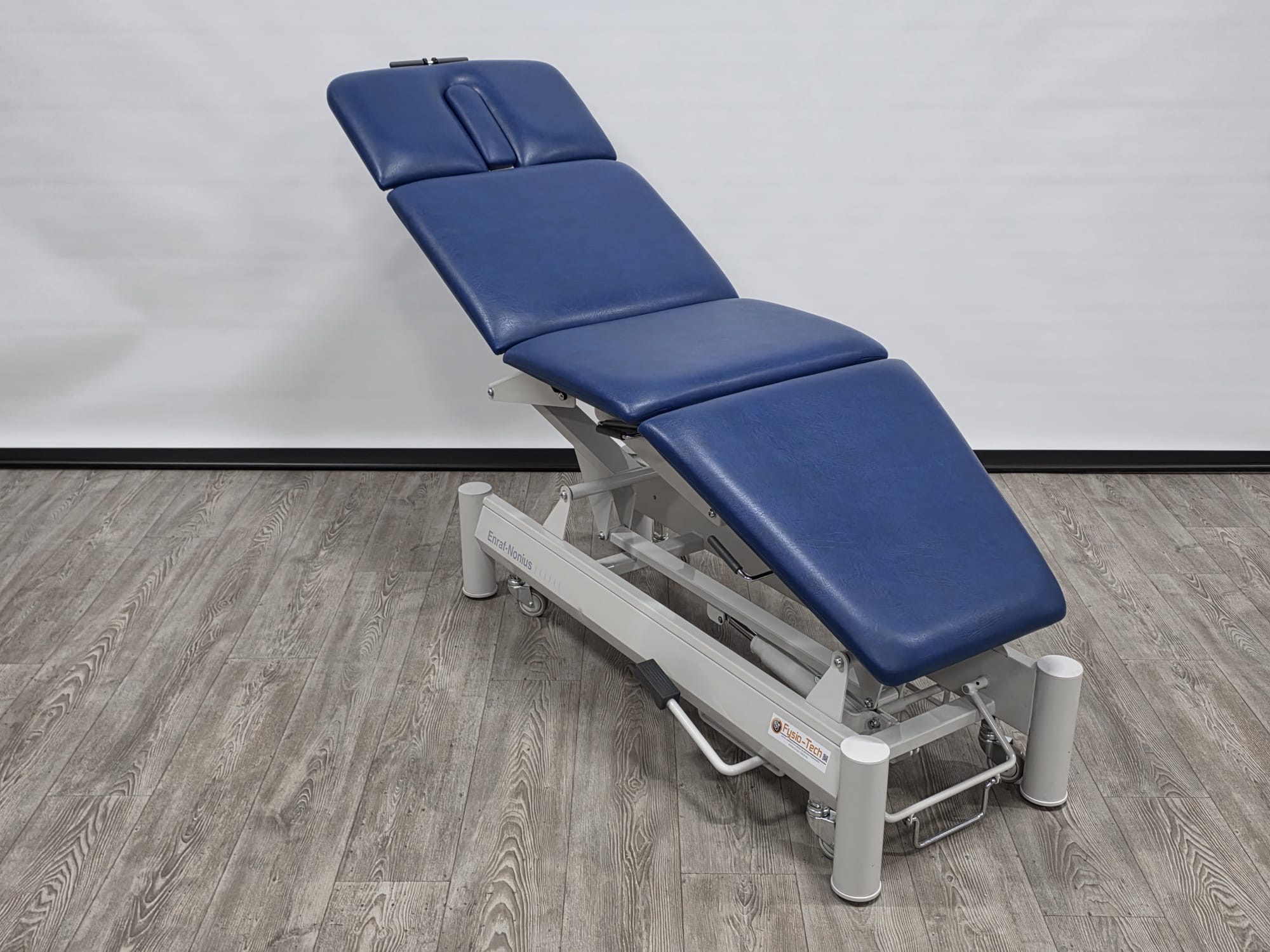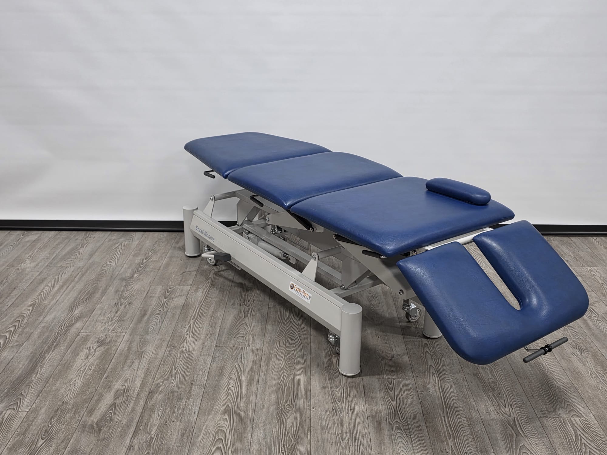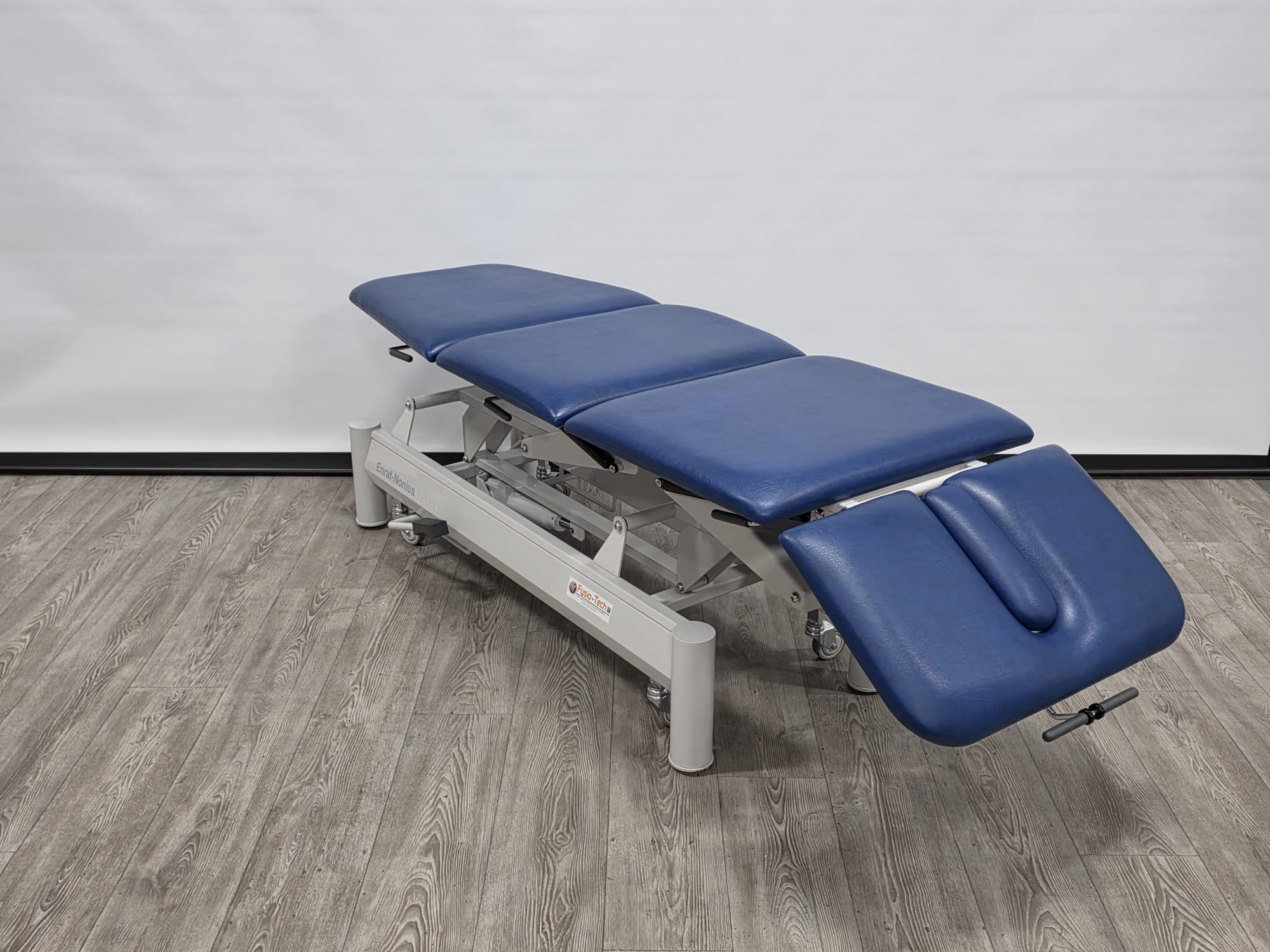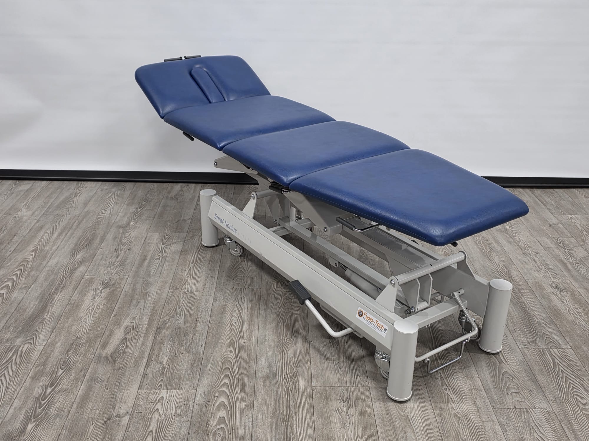 Deze Enraf-Nonius vierdelige behandeltafel wordt geleverd als complete set, inclusief bijpassende taburet, massagekussen en massagerol. Ideaal voor fysiotherapie, massage, revalidatie en andere behandelingen.