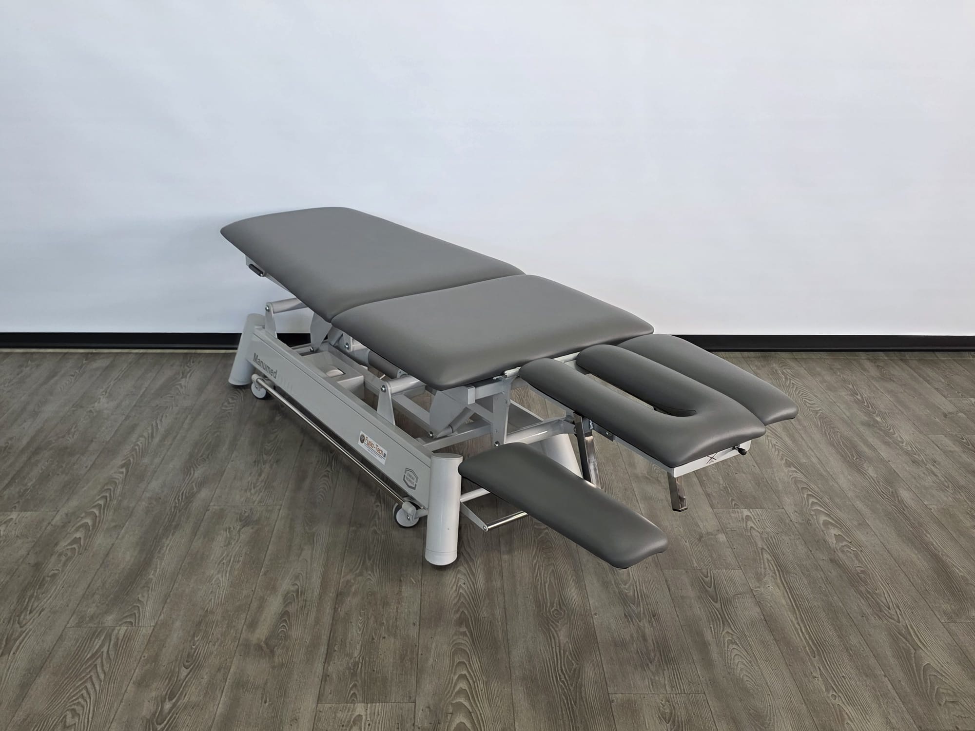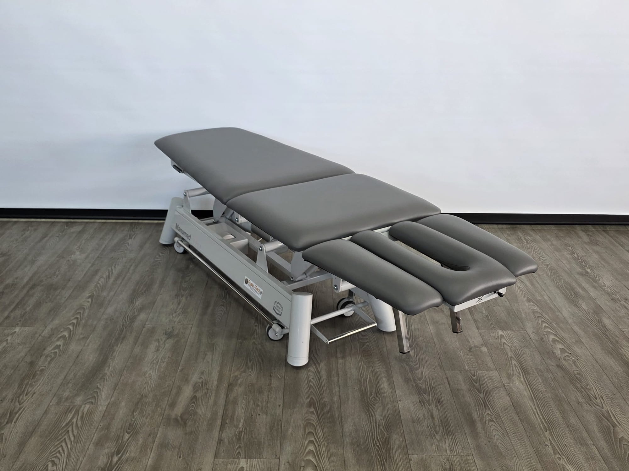 Deze professionele behandeltafel is elektrisch in hoogte verstelbaar door middel rondom bediening.