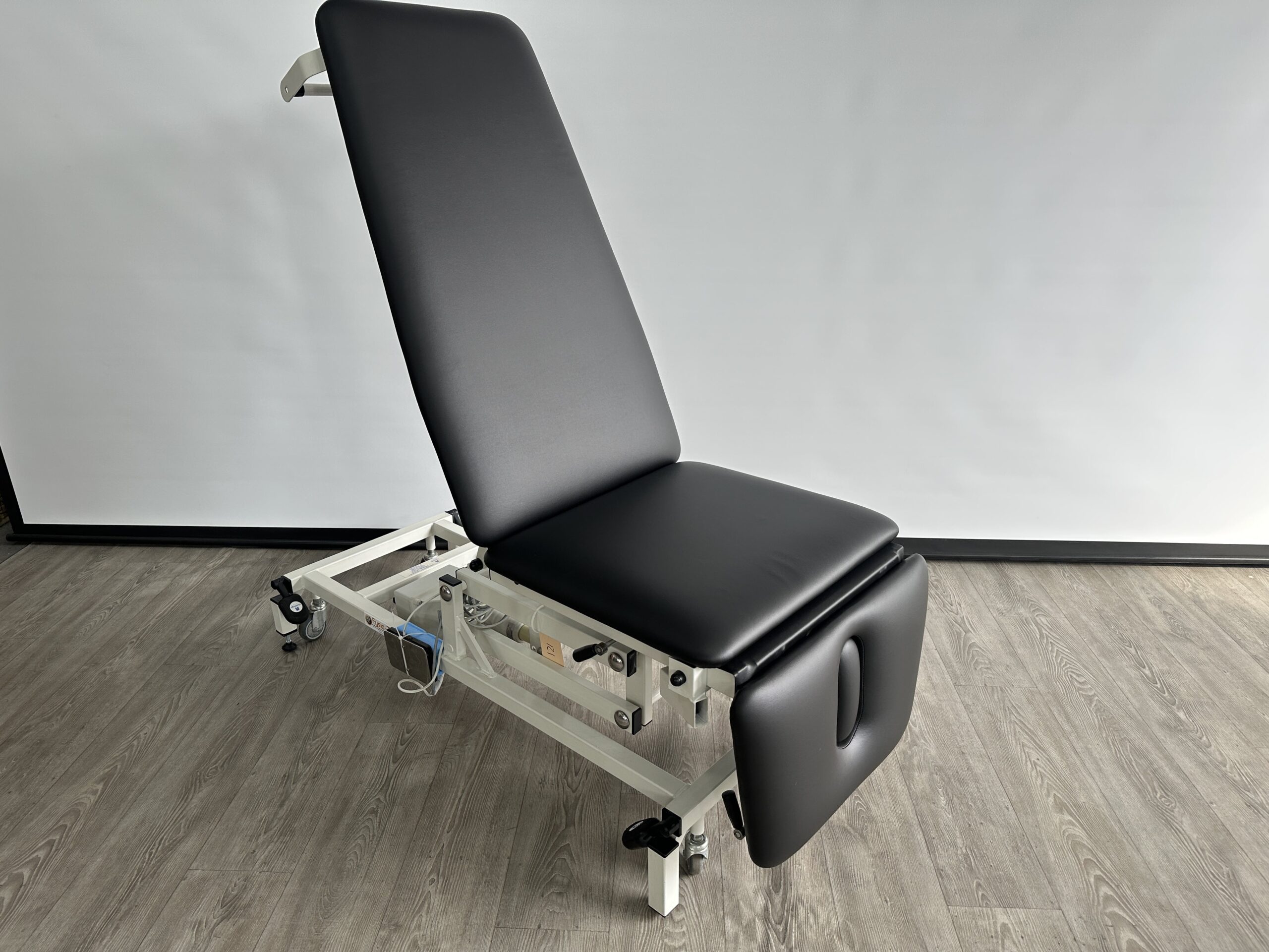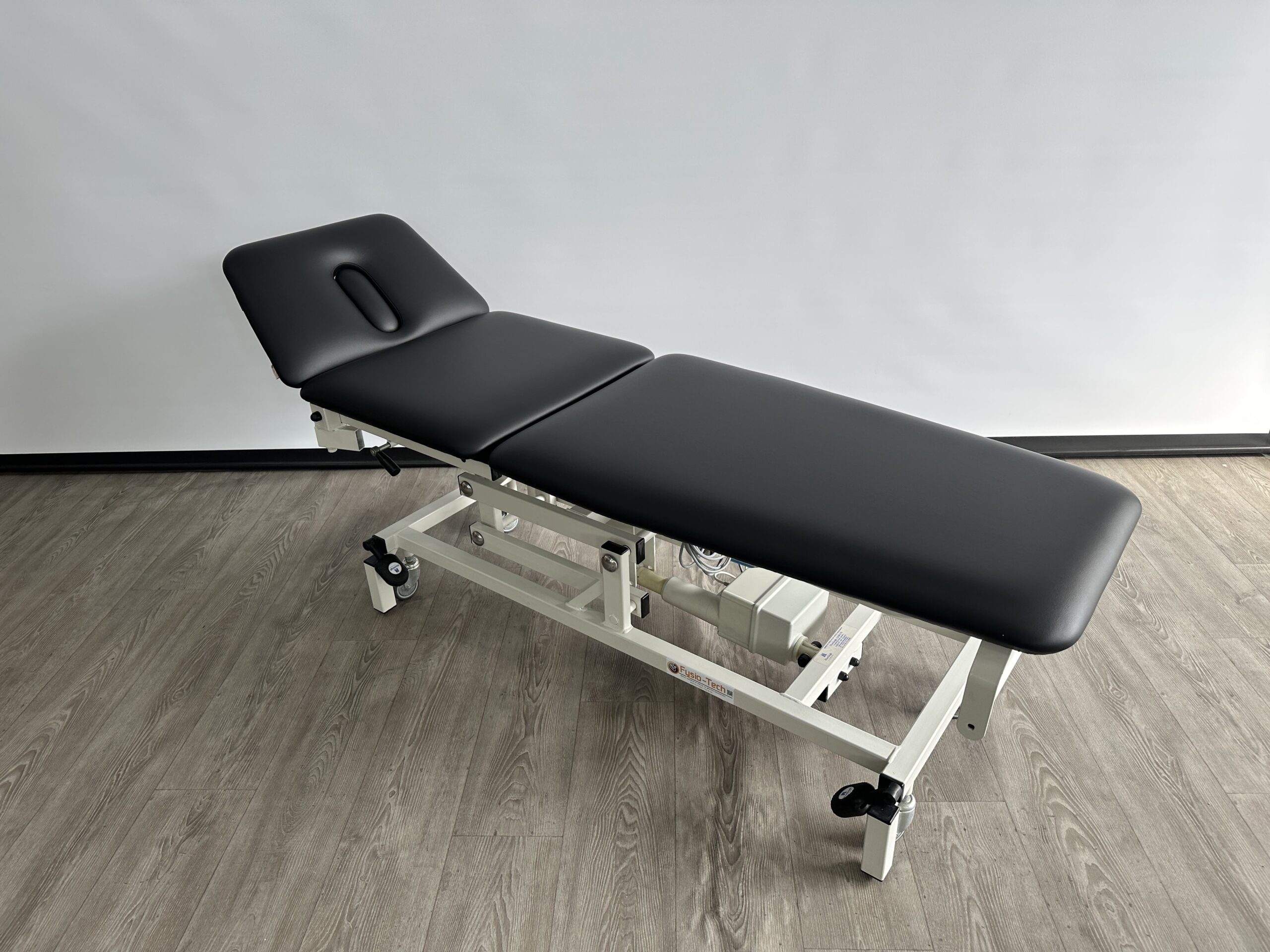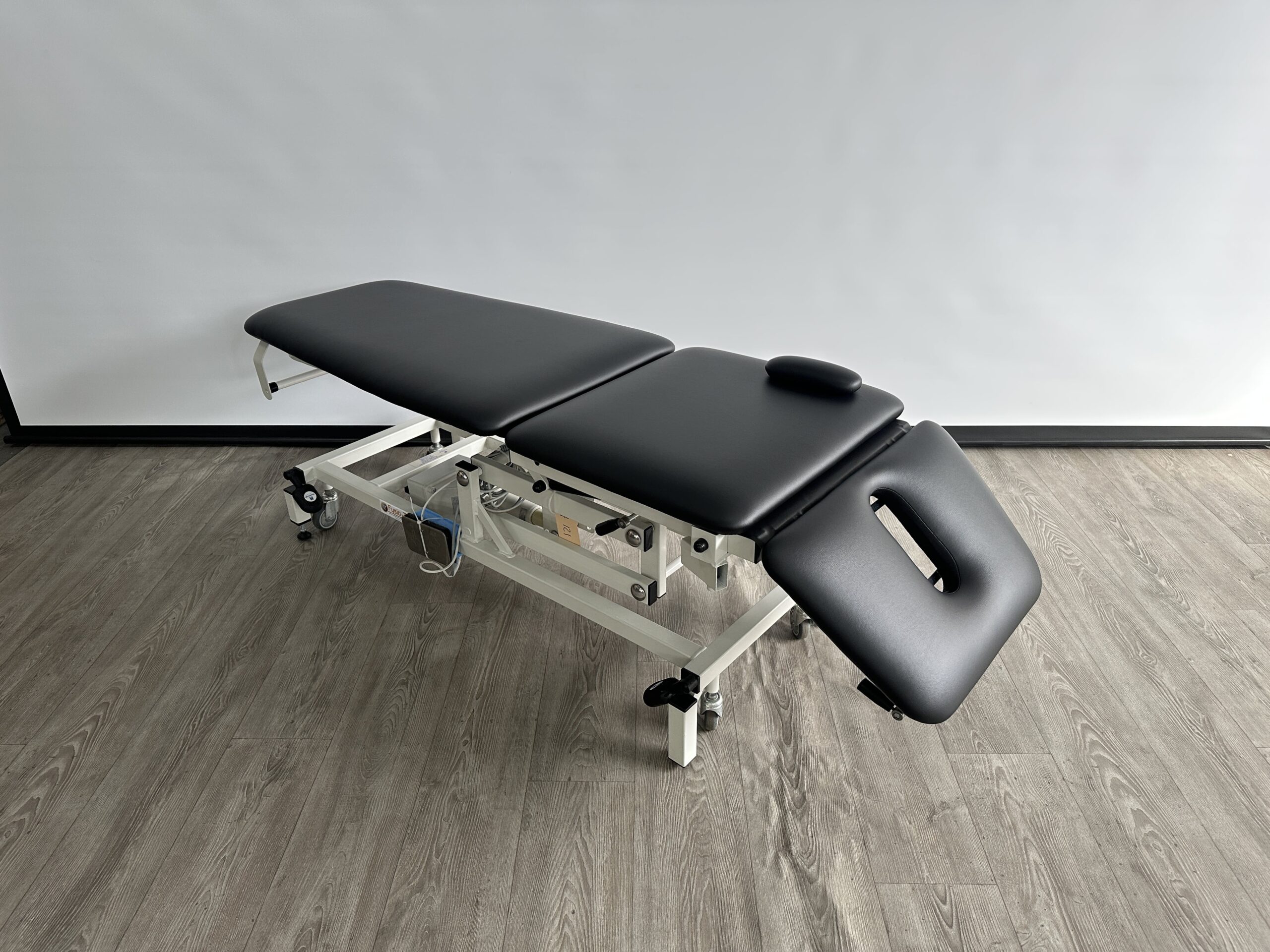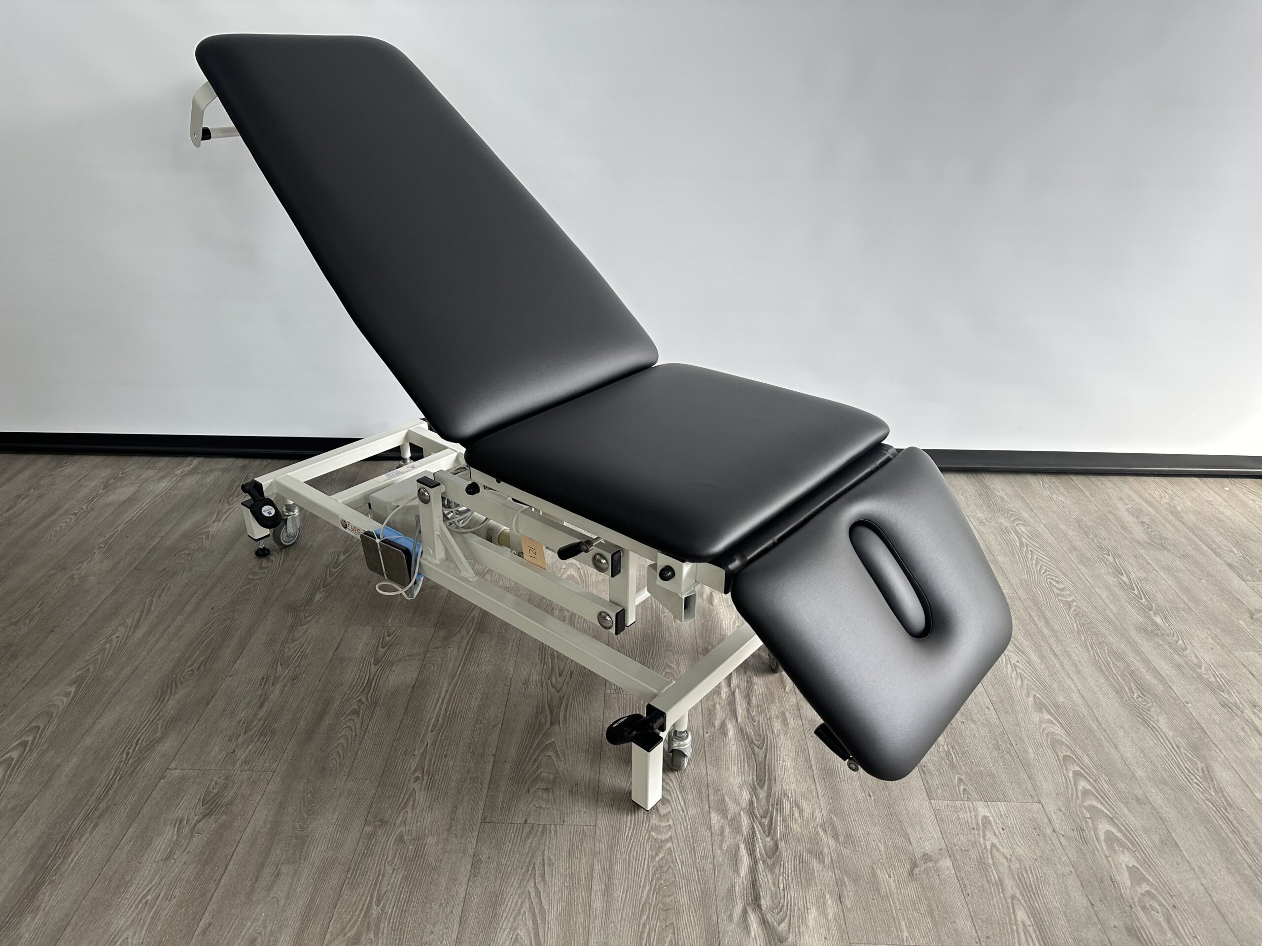 Deze professionele behandeltafel is elektrisch in hoogte verstelbaar door middel van een voetschakelaar. De tafel is eenvoudig te verplaatsen door de 4 zwenkwielen. Alle delen zijn traploos verstelbaar door middel van gasveren.