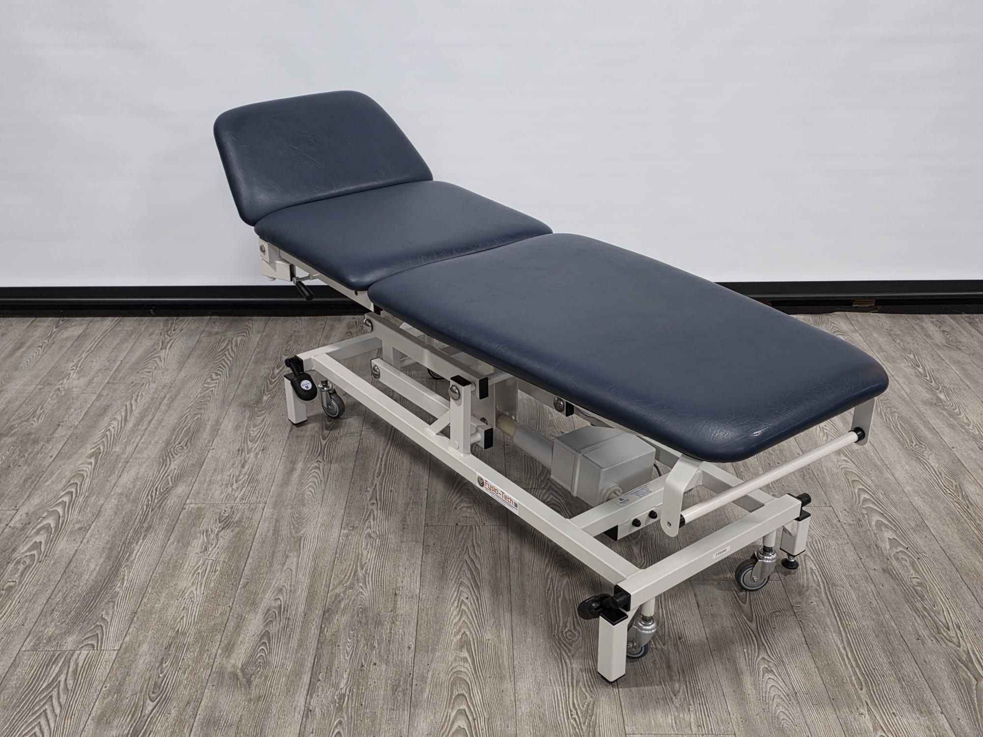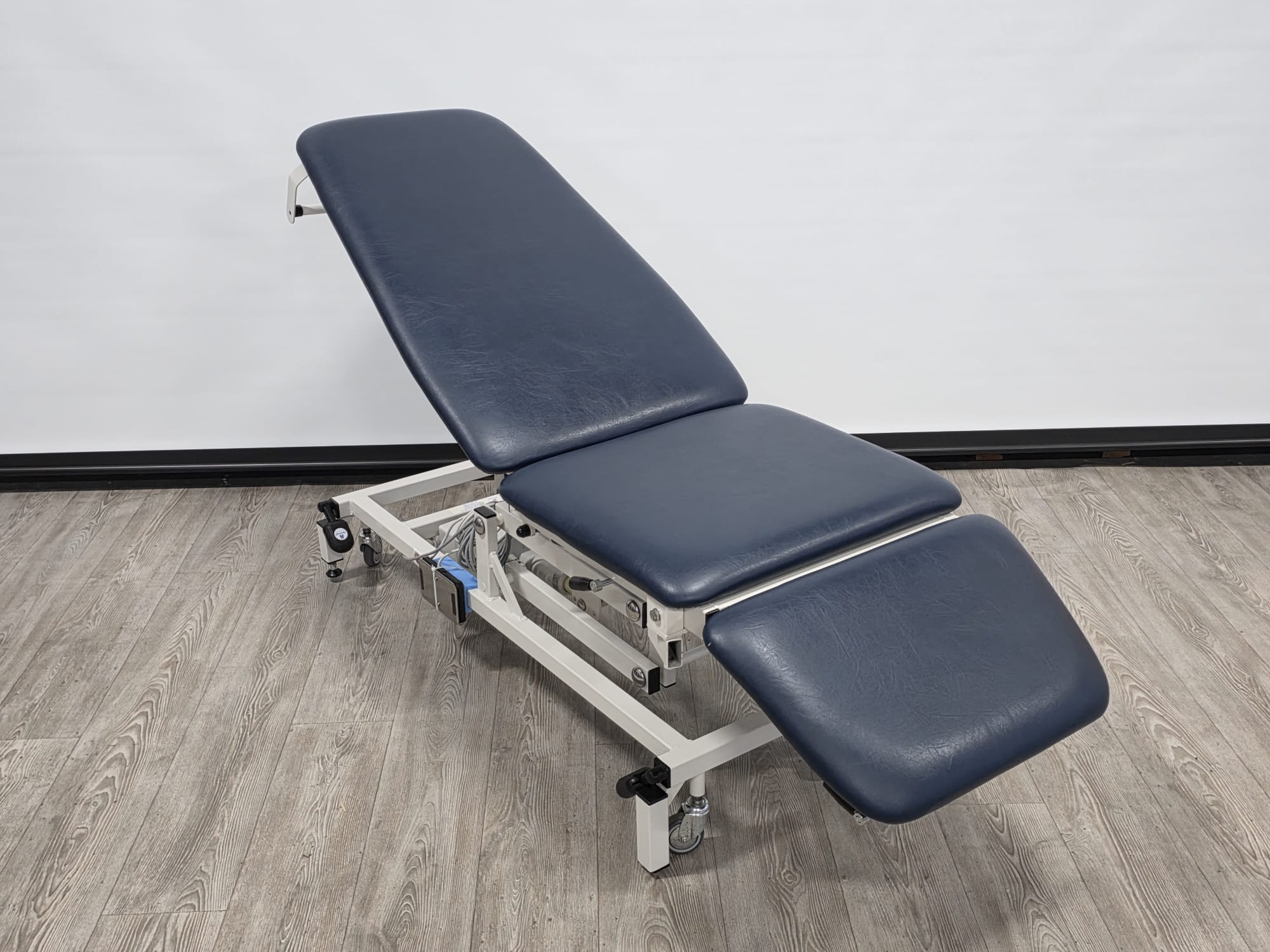 Deze professionele behandeltafel is elektrisch in hoogte verstelbaar door middel van een voetschakelaar.