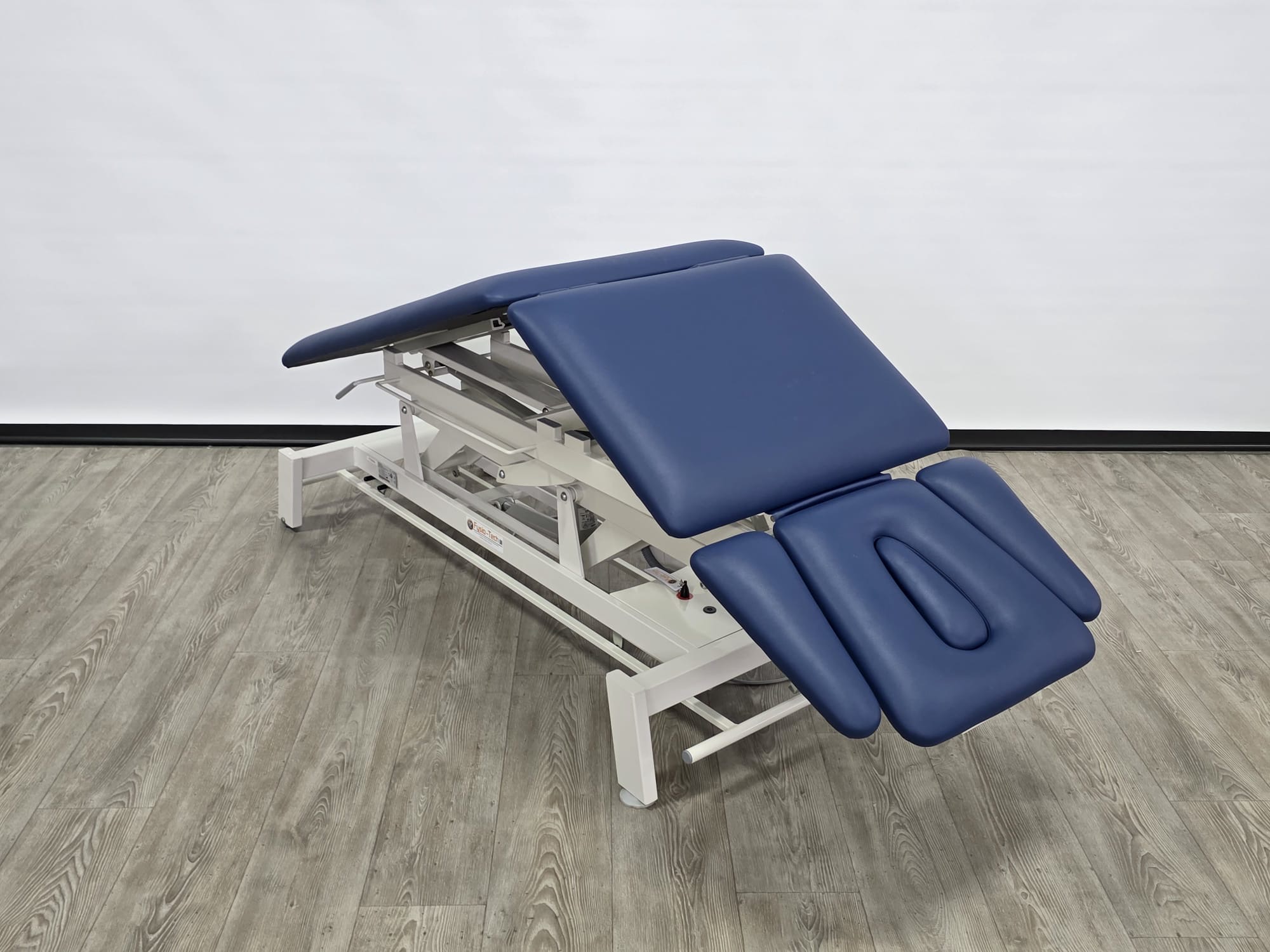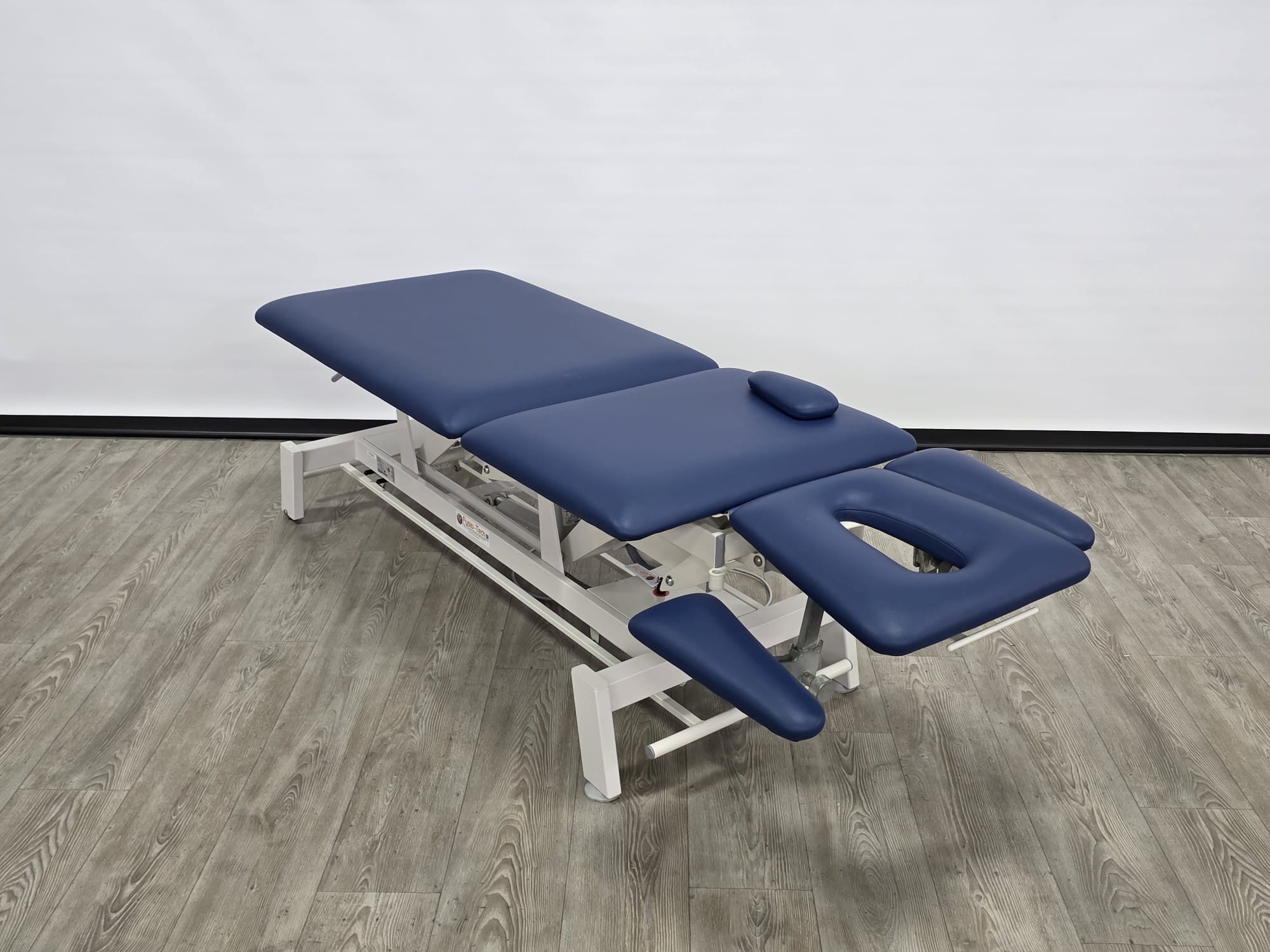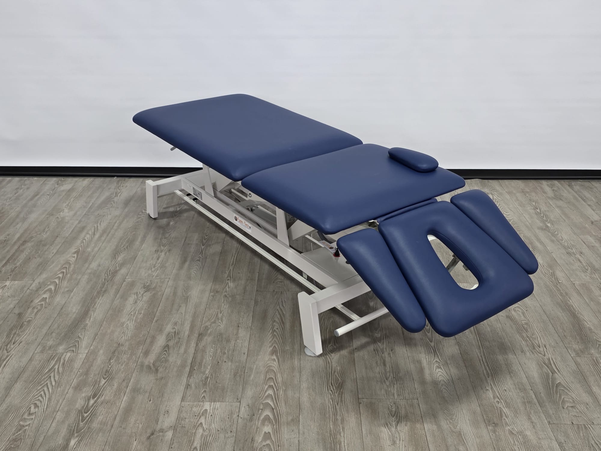 Deze professionele behandeltafel is elektrisch in hoogte verstelbaar door middel rondom bediening.