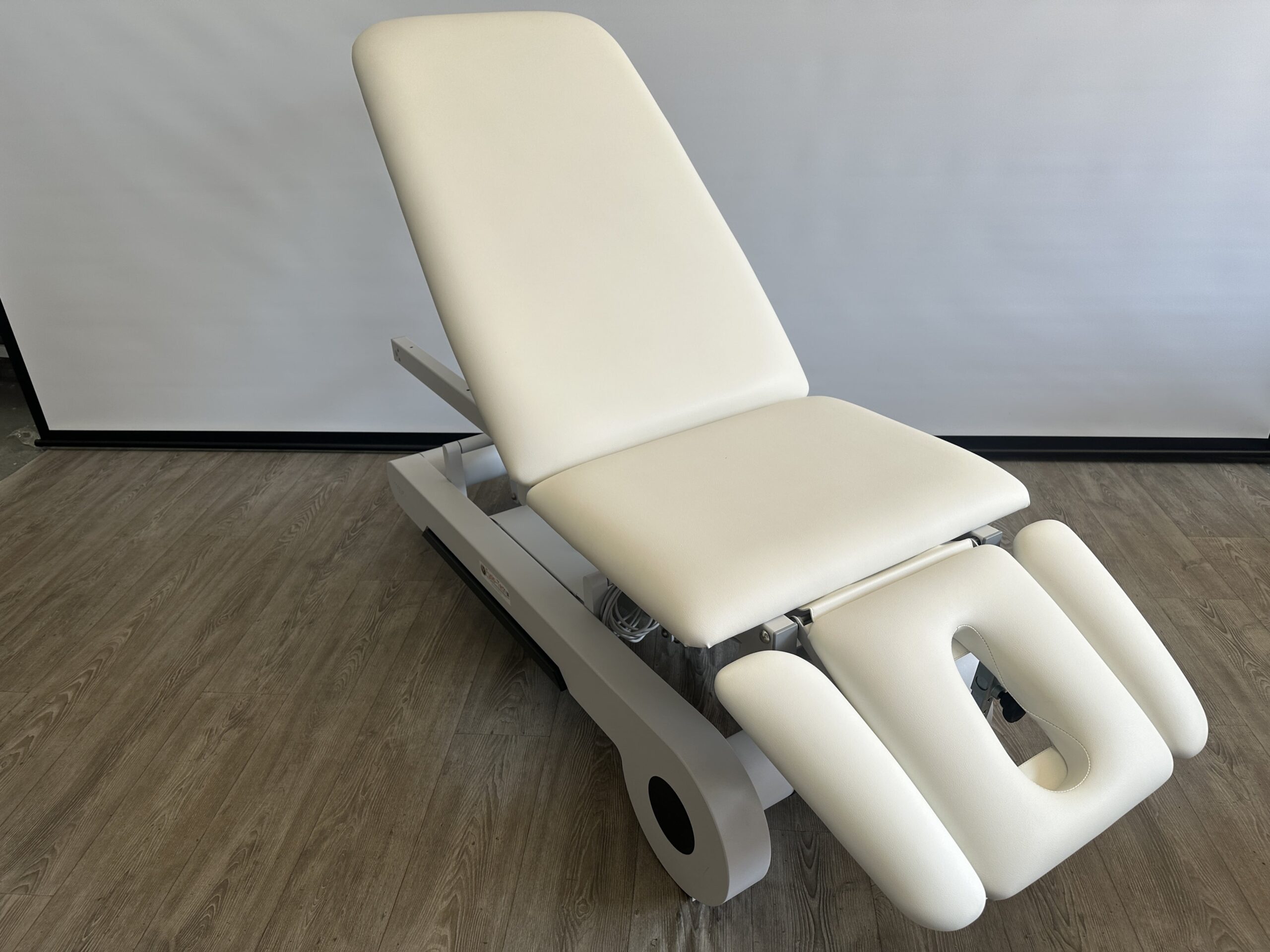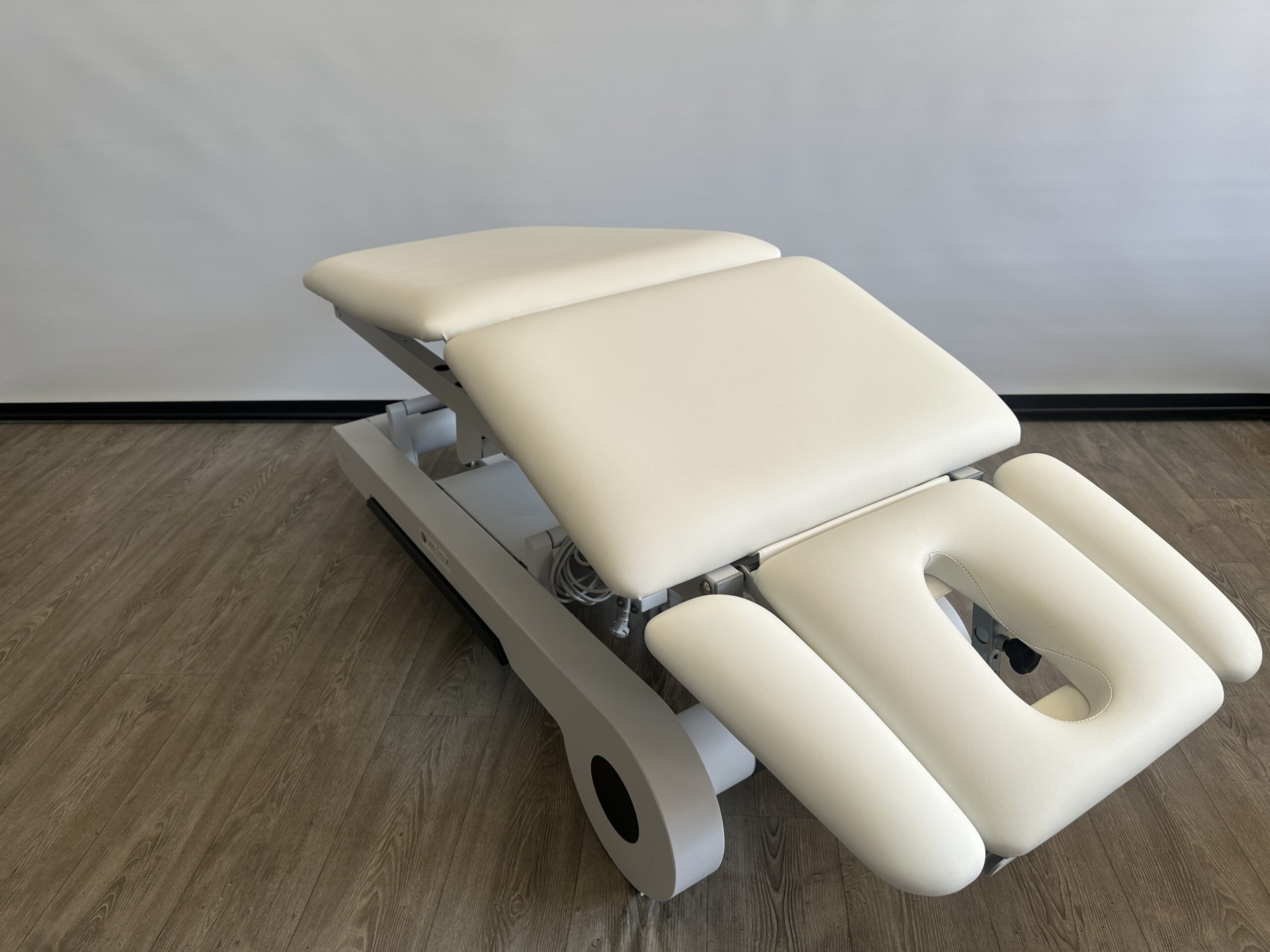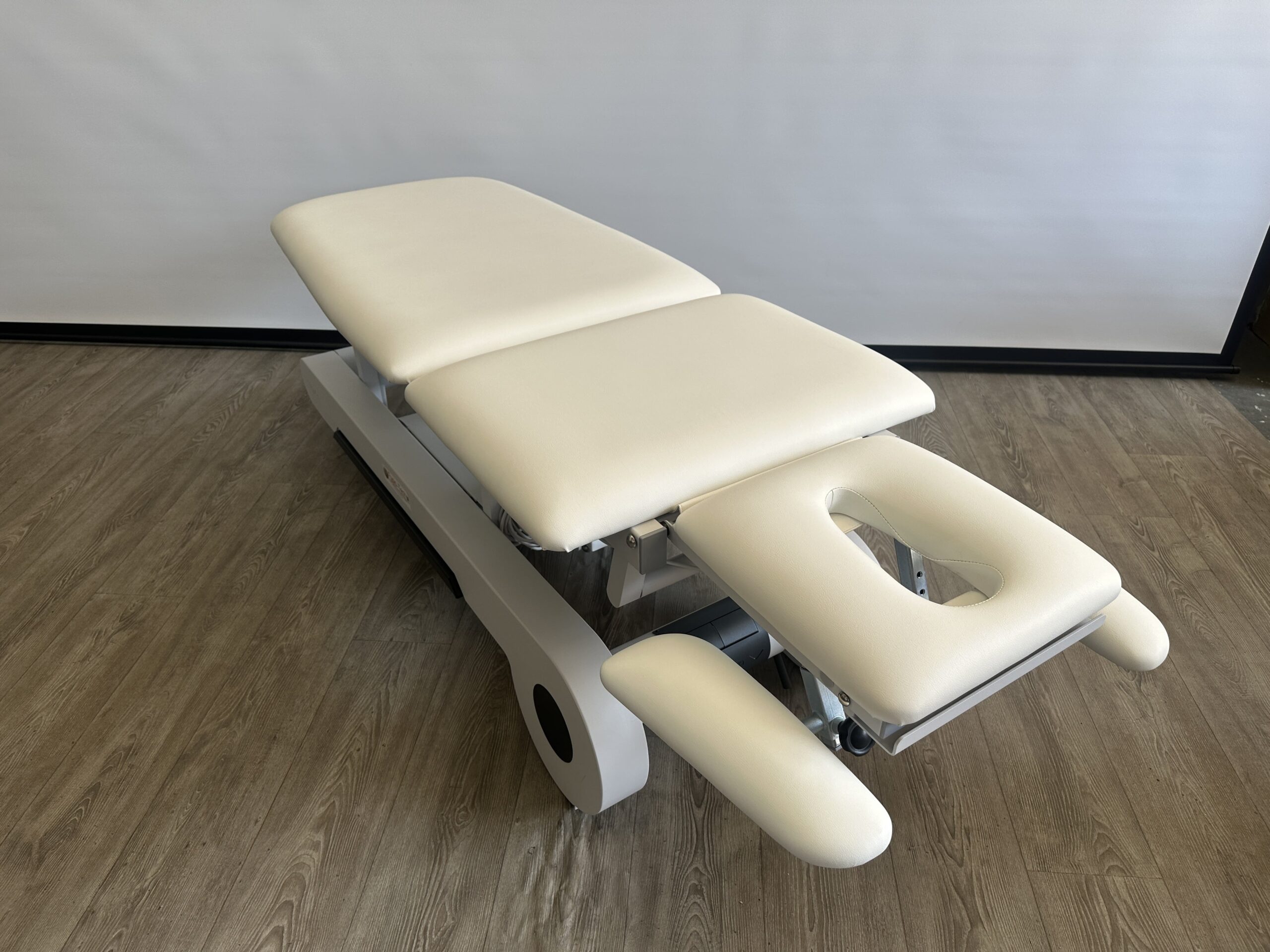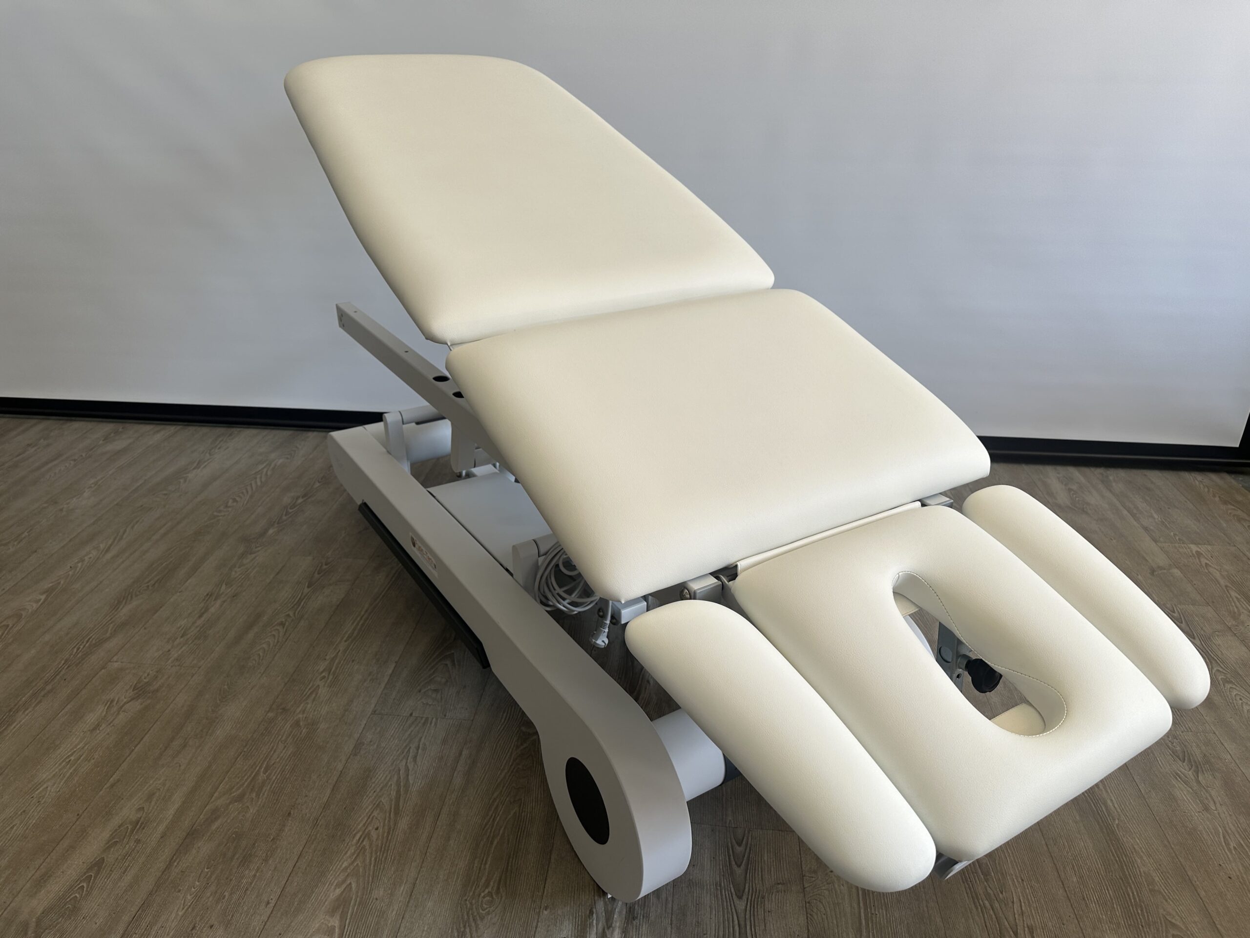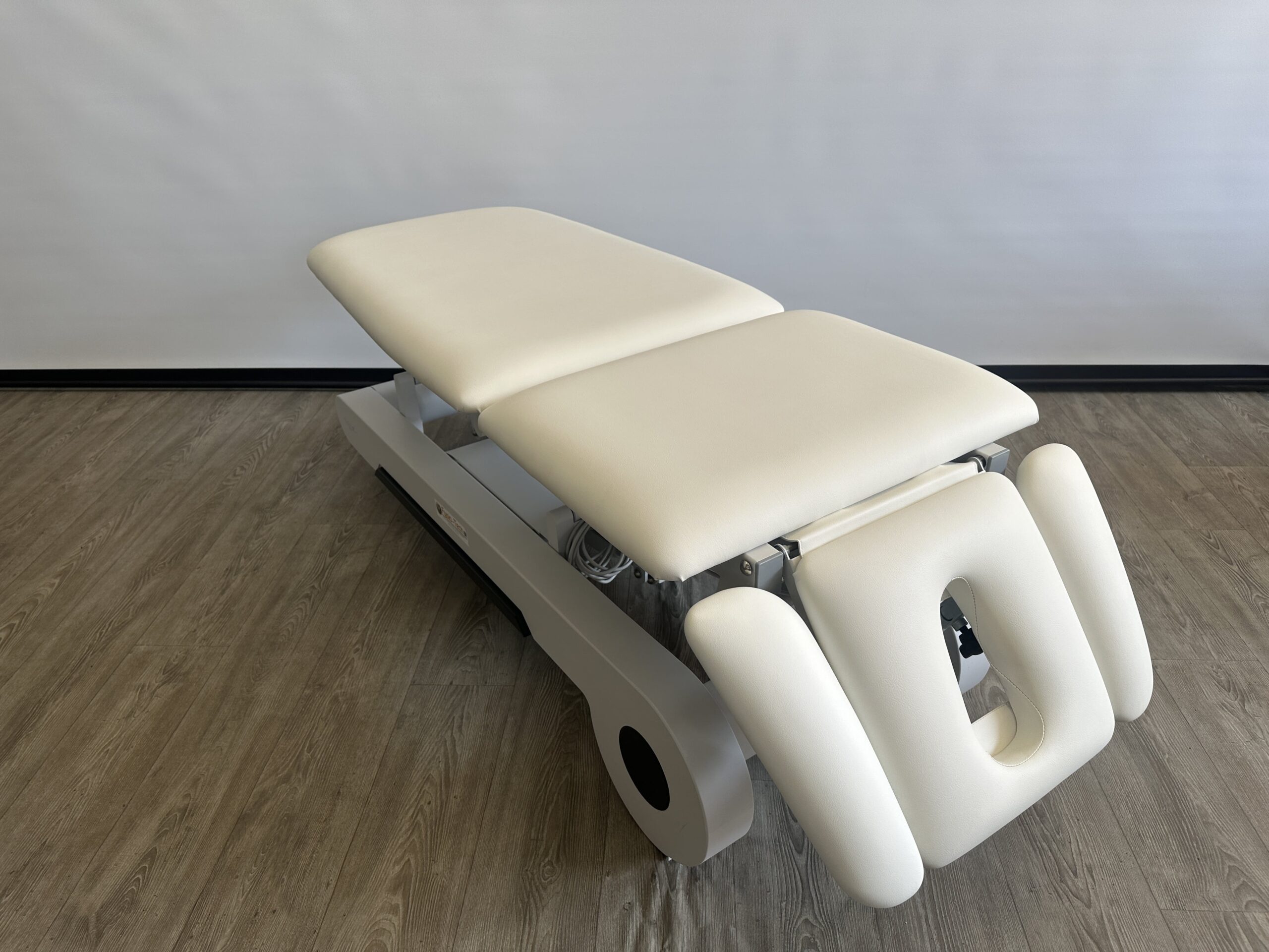 Deze professionele behandeltafel is elektrisch in hoogte verstelbaar door middel rondom bediening. De behandeltafel is voorzien van wielen en een centraal wielhefsysteem. De armsteunen kunnen naar beneden worden geplaatst voor ideale buikligging. Door een…