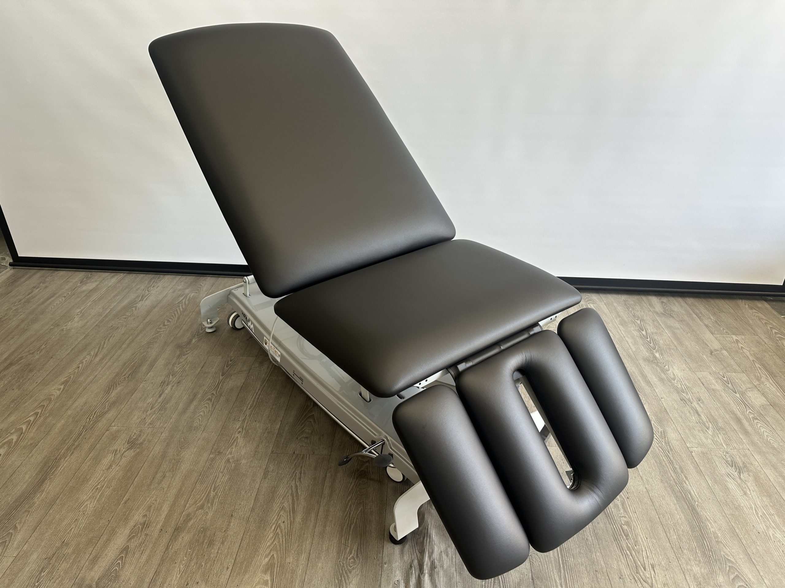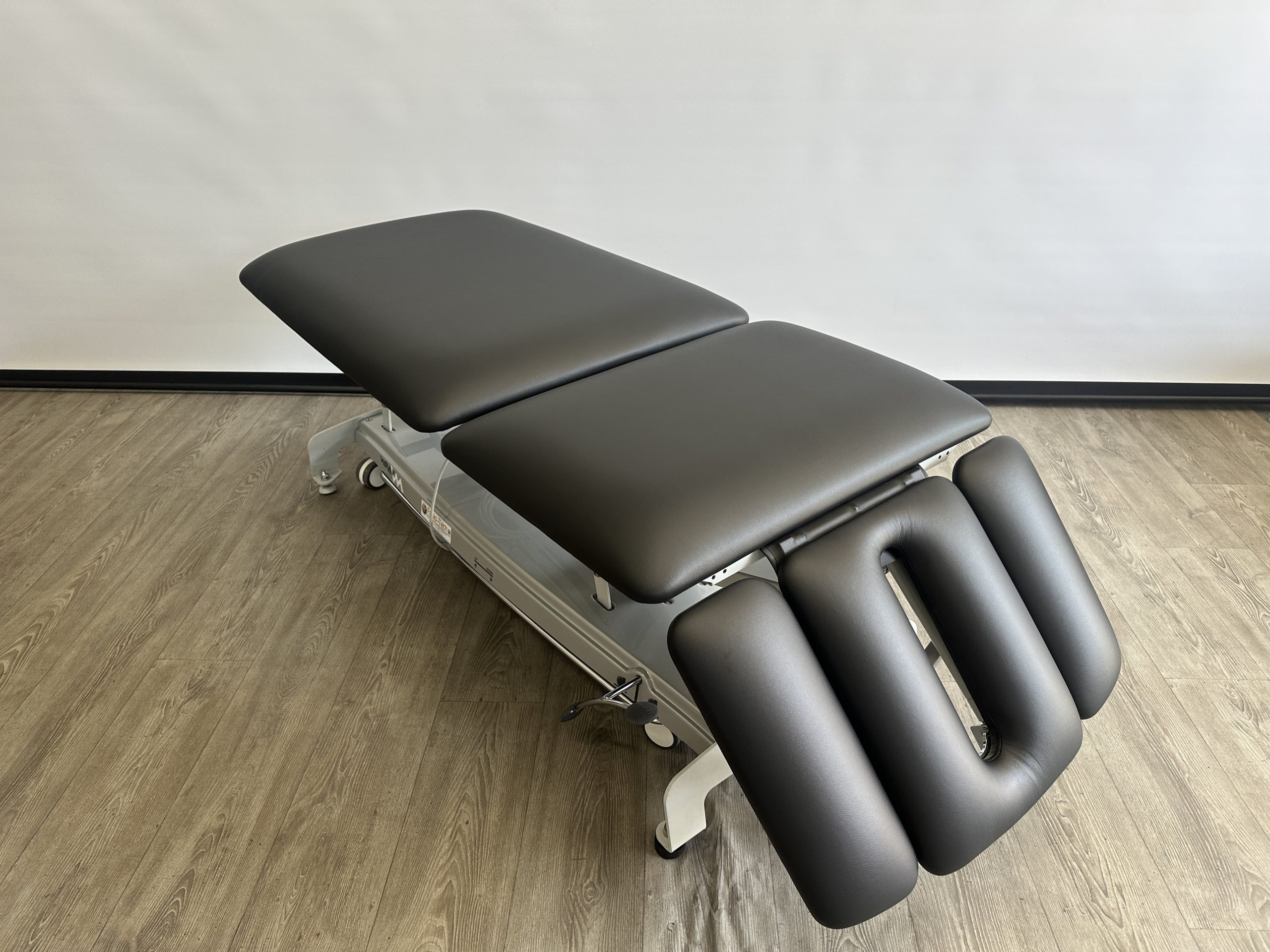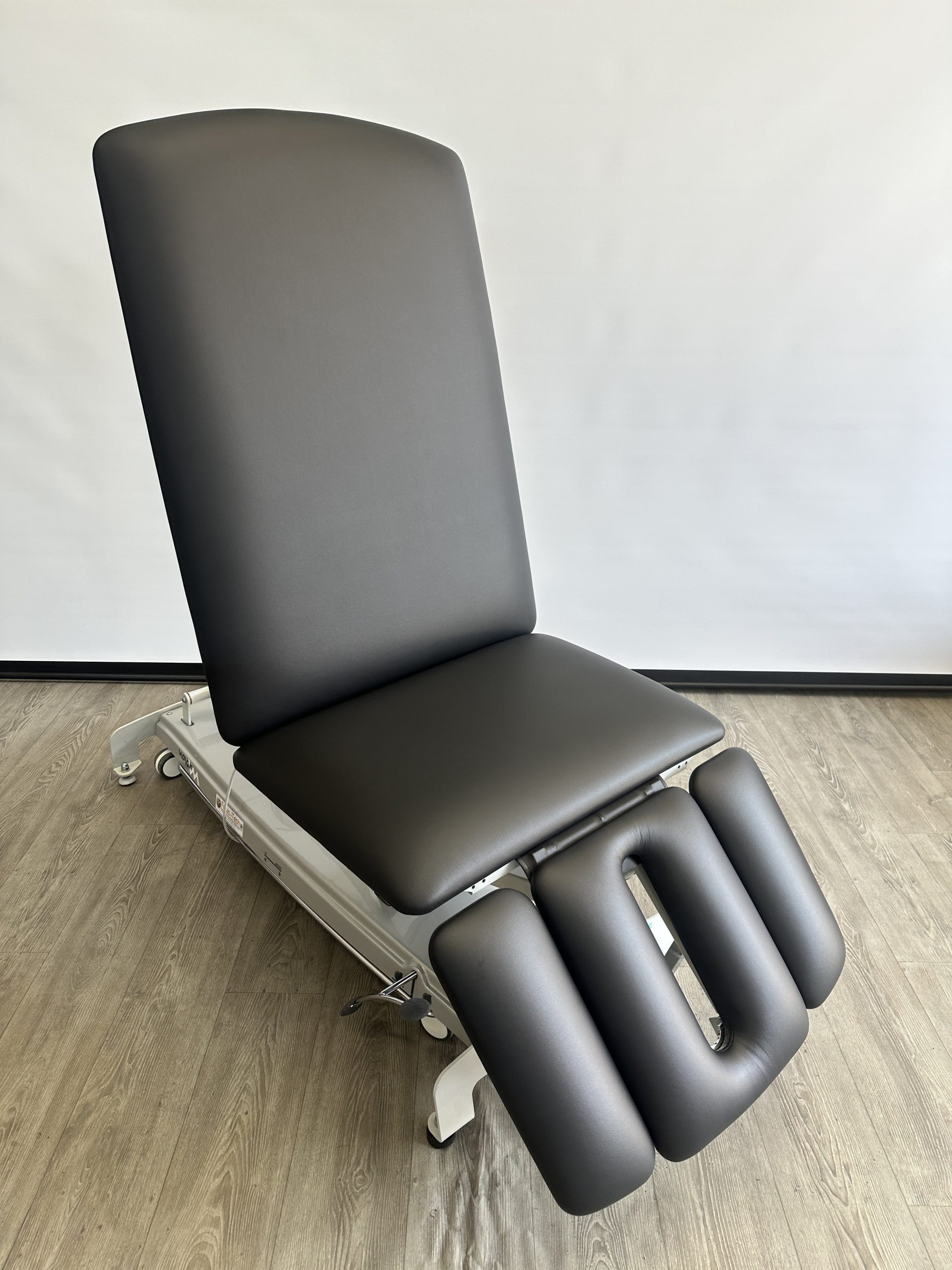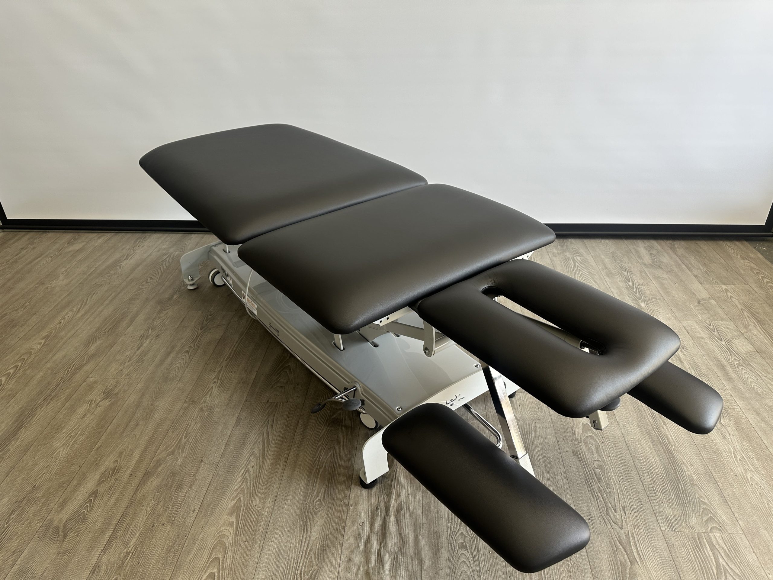 Deze professionele behandeltafel is elektrisch in hoogte verstelbaar door middel van een rondomschakelaar. De behandeltafel is voorzien van wielen en een centraal wielhefsysteem. De delen zijn verstelbaar doormiddel van gasveren. De armsteunen…