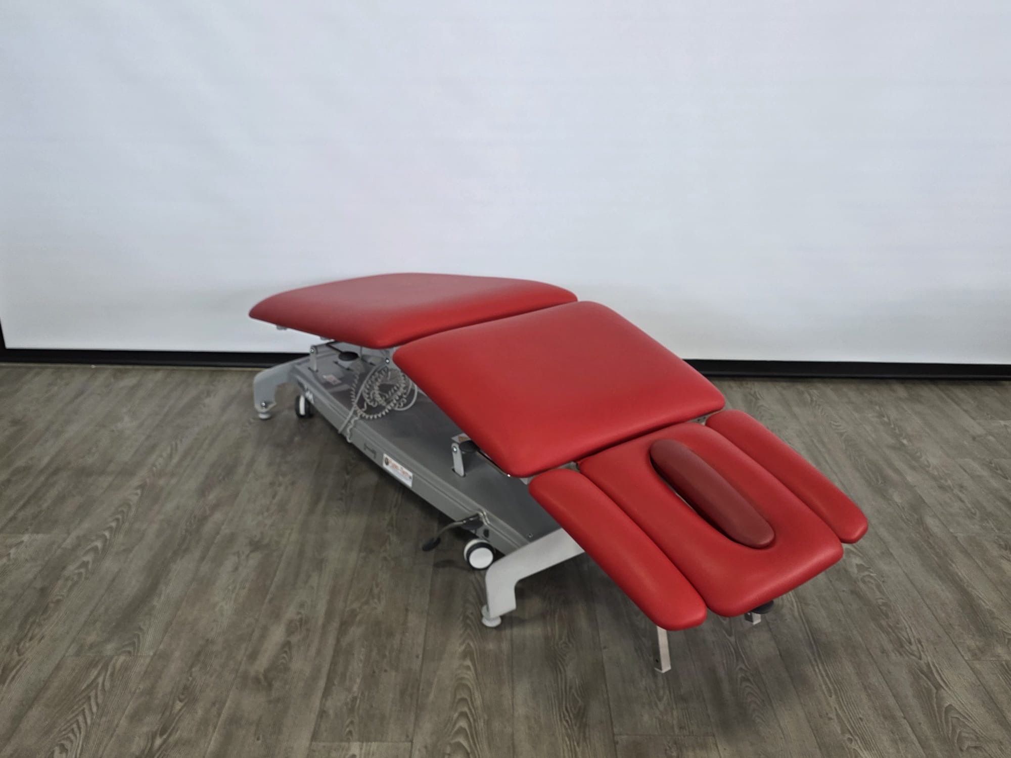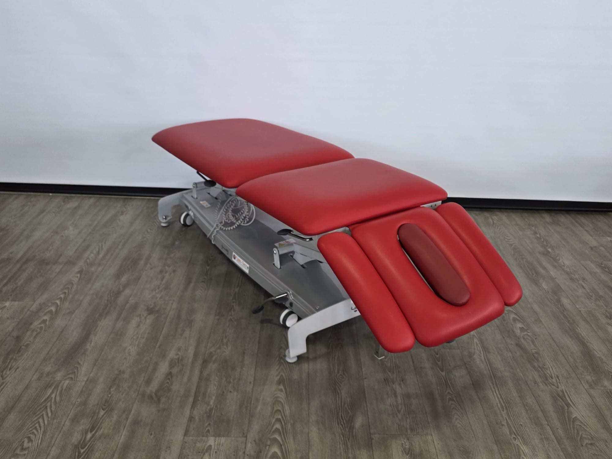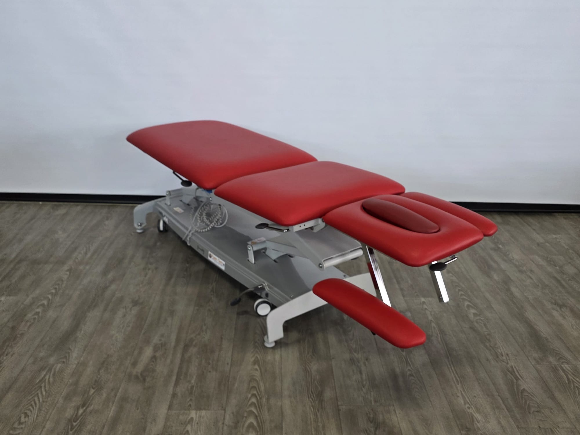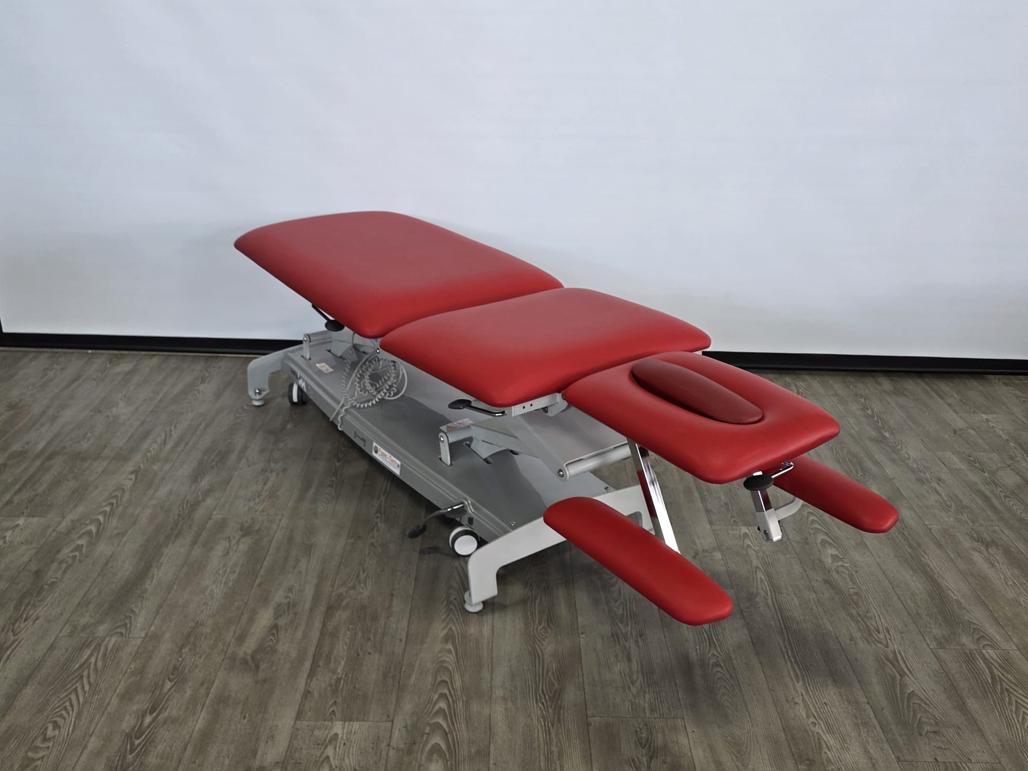 De behandeltafel is voorzien van wielen en een centraal wielhefsysteem. De delen zijn verstelbaar doormiddel van gasveren. De armsteunen zijn mechanisch instelbaar.