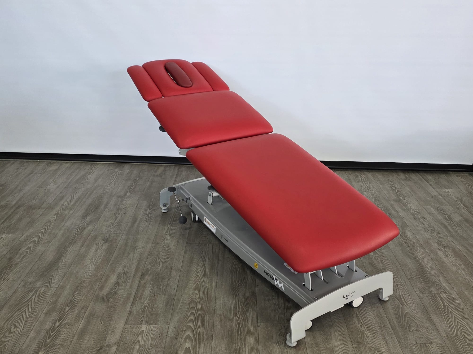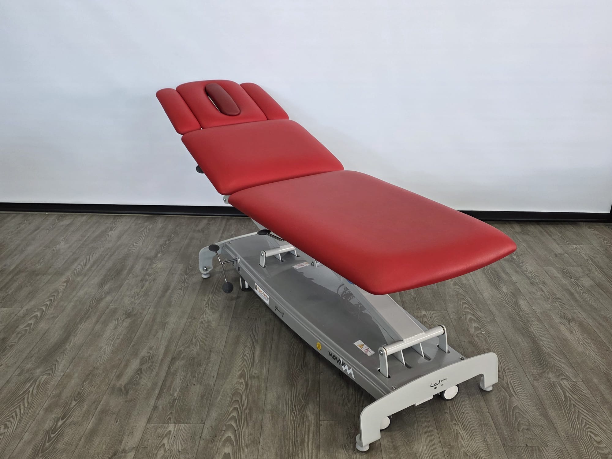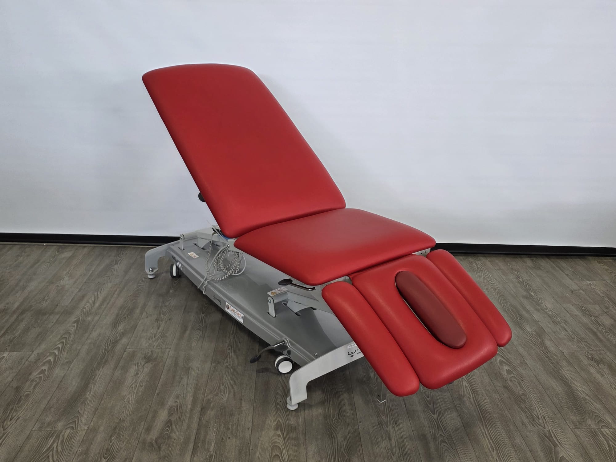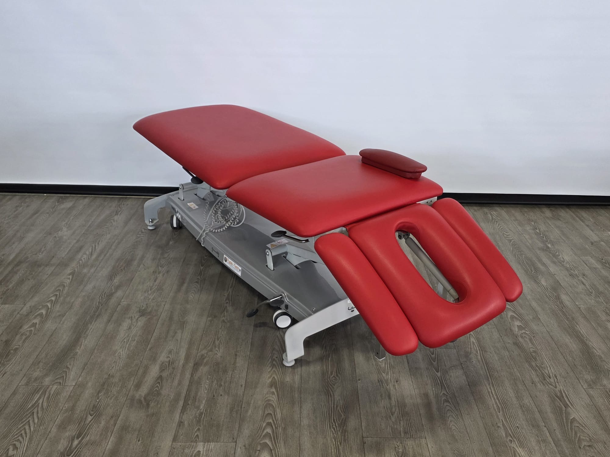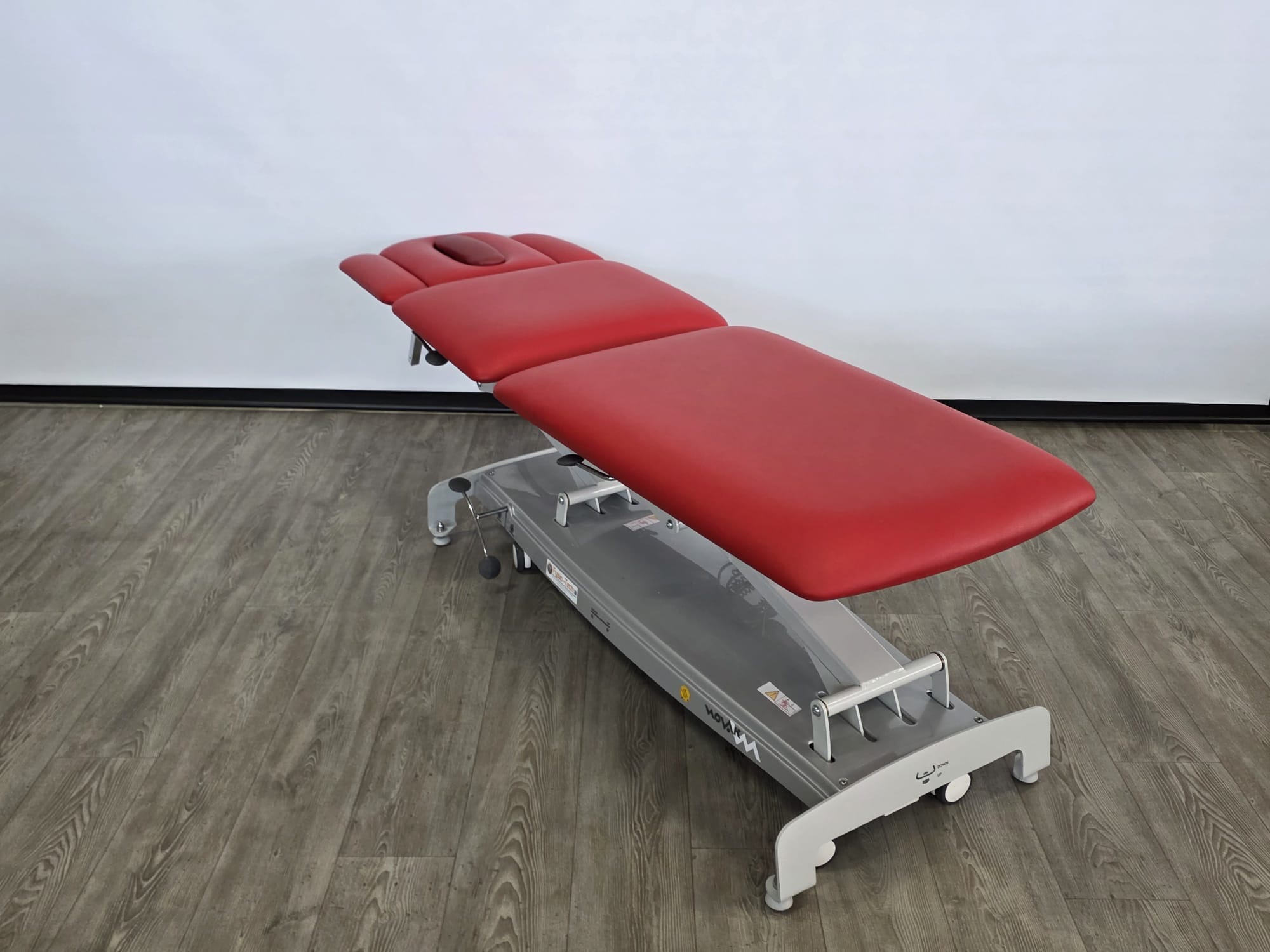 De behandeltafel is voorzien van wielen en een centraal wielhefsysteem. De delen zijn verstelbaar doormiddel van gasveren. De armsteunen zijn mechanisch instelbaar.