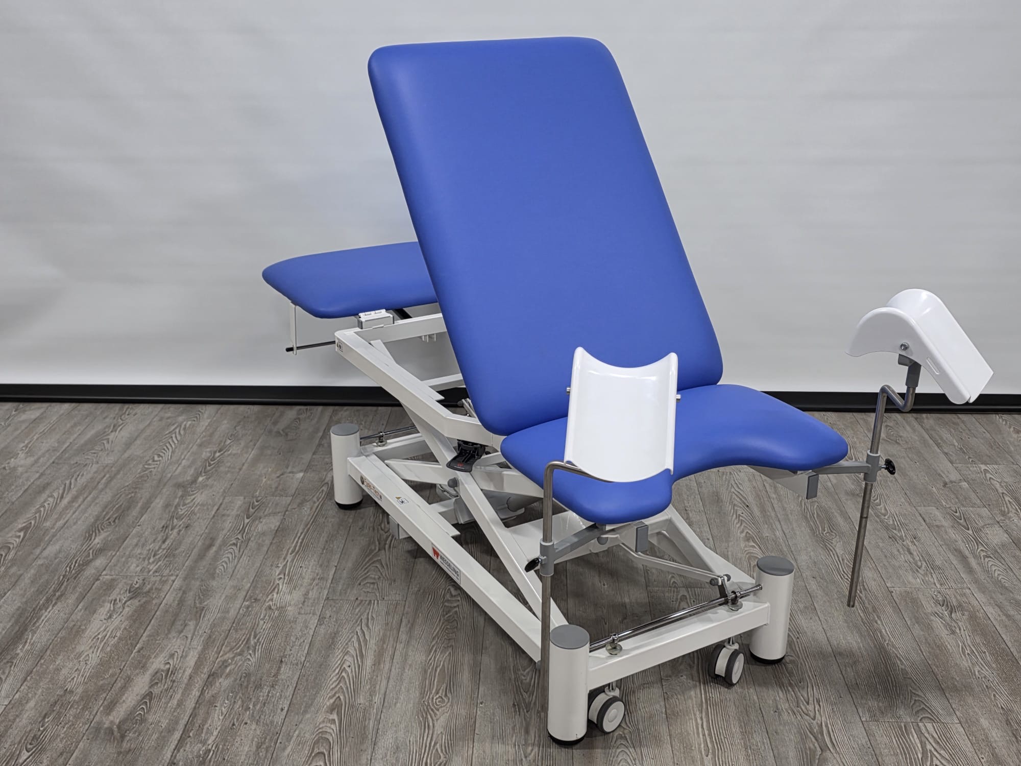 De Wesseling BV Kombi S is een professionele behandeltafel die elektrisch in hoogte verstelbaar is via een voetschakelaar. Dankzij het grote verstelbereik van 42 cm tot 112 cm is de tafel geschikt voor vrijwel iedere behandeling in een huisartsenpraktijk of verloskundige praktijk. De lage instaphoogte biedt comfort voor de patiënt, terwijl de hoge stand zorgt voor een ergonomische werkhouding.