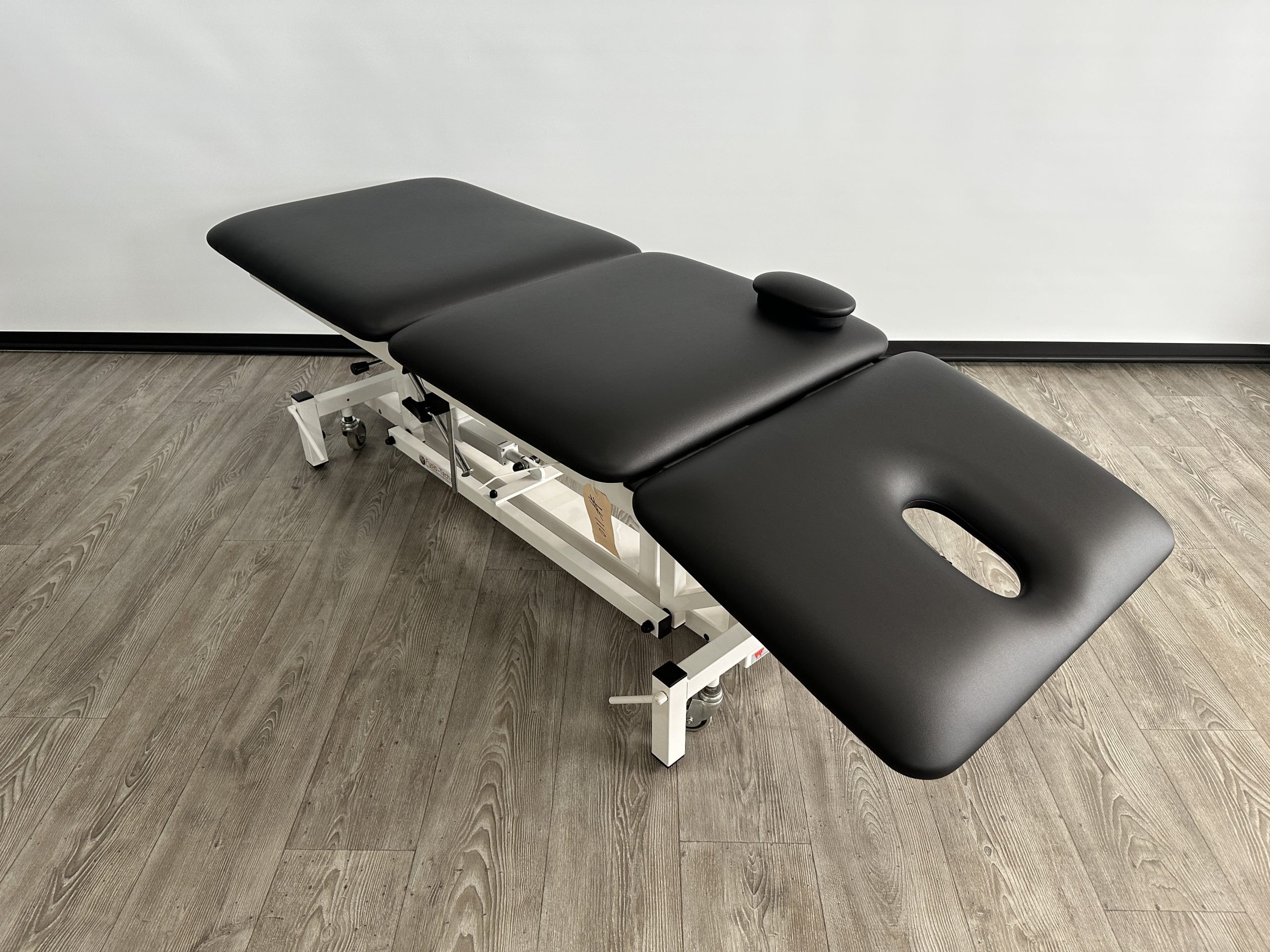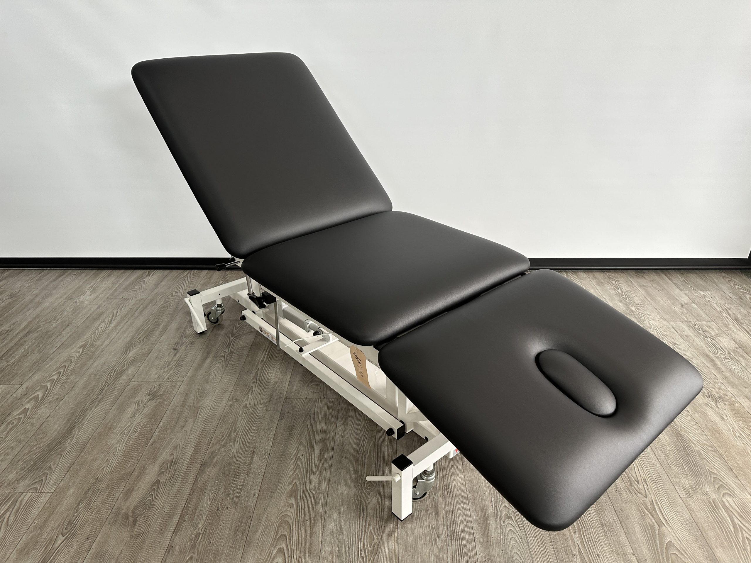 Deze professionele behandeltafel is elektrisch in hoogte verstelbaar door middel van een voetschakelaar. De tafel eenvoudig te verplaatsen door de 4 zwenkwielen.
