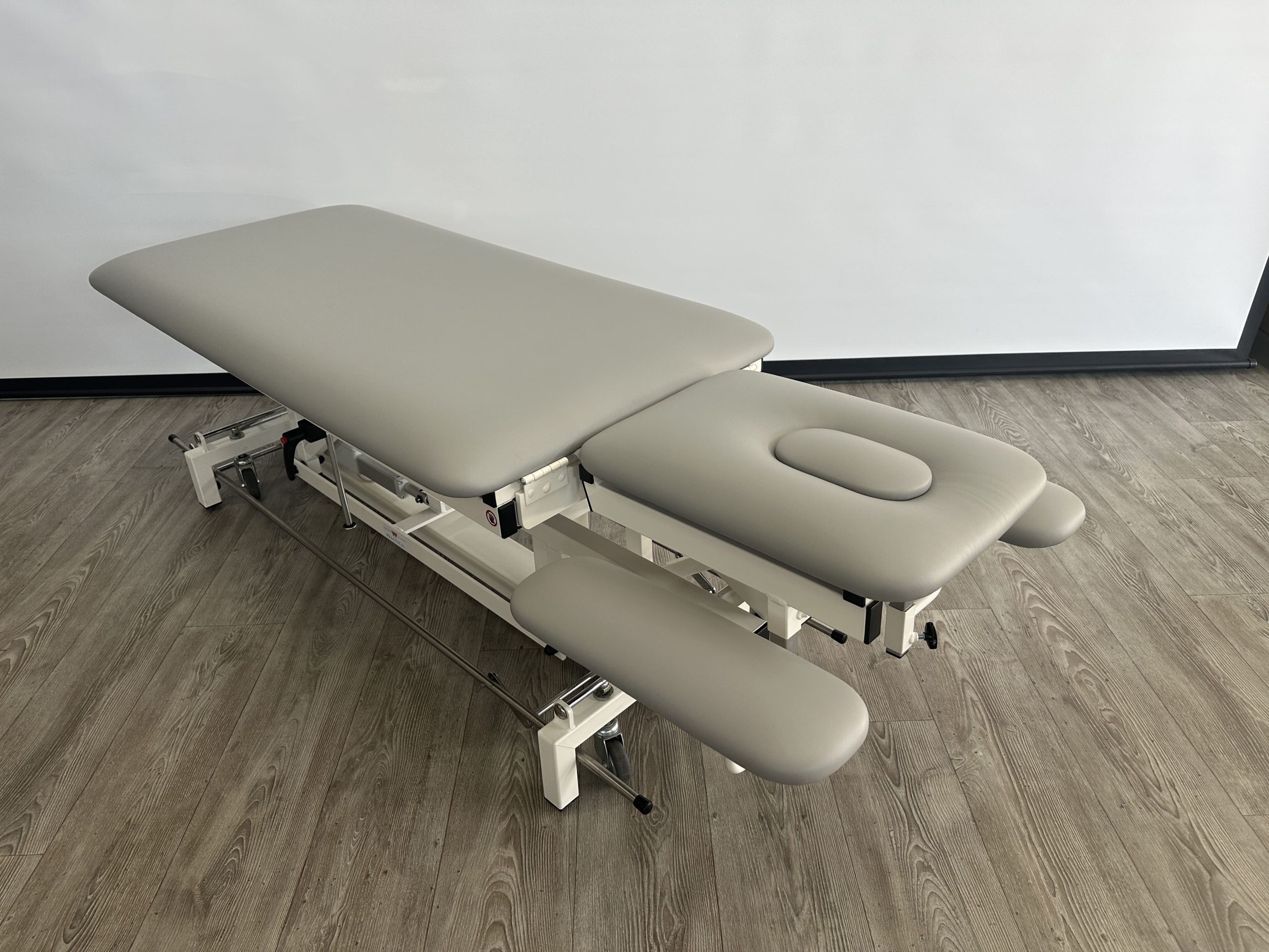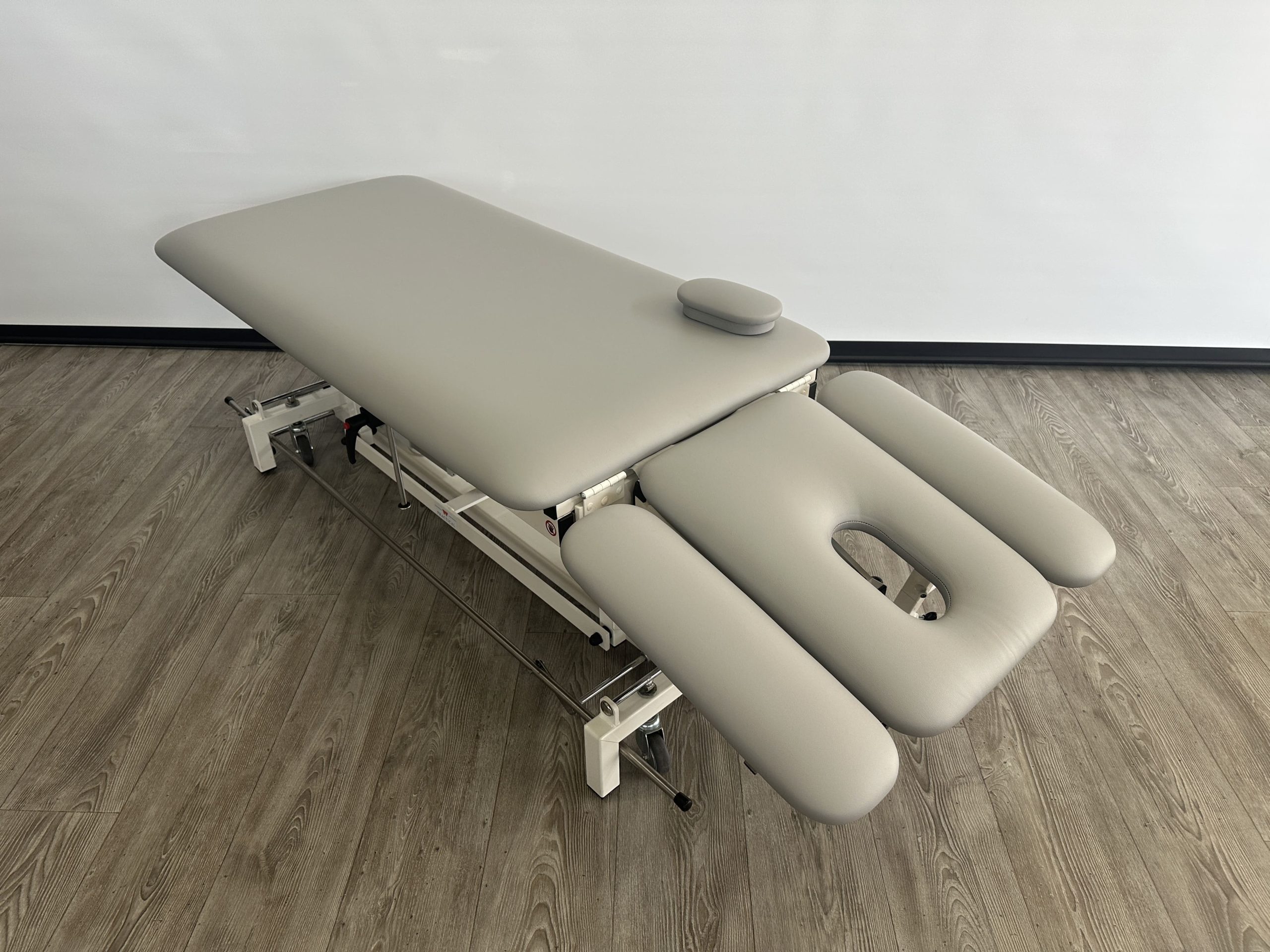 Deze professionele behandeltafel is elektrisch in hoogte verstelbaar door middel van een rondomschakelaar. Ook is de tafel eenvoudig te verplaatsen door de 4 zwenkwielen en een centraal wielhefsysteem. De tafel beschikt over…
